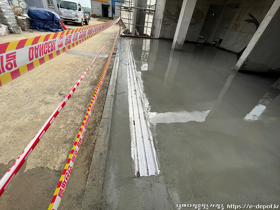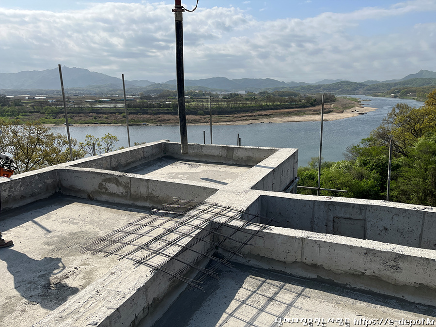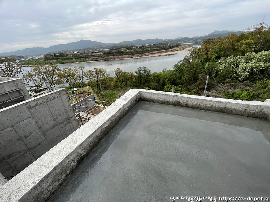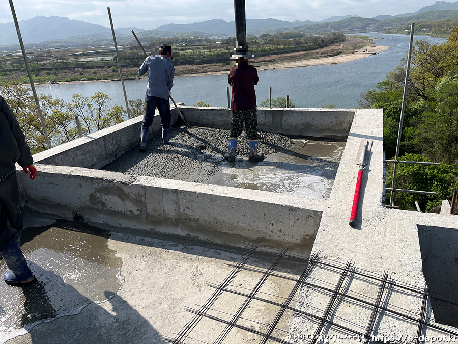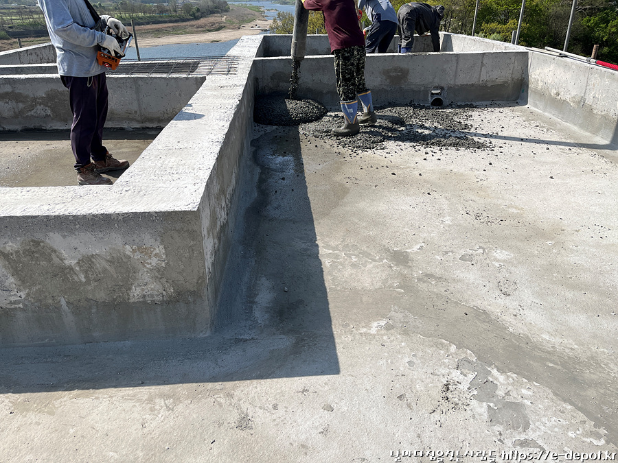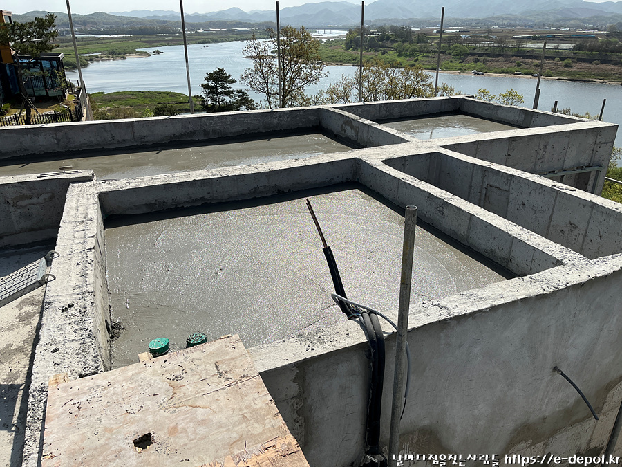 날마다 집을 짓는 사람들의 서울근교 연천 독채풀빌라 펜션 벨37 신축일지. 누름콘크리트 타설 과정이었습니다.
