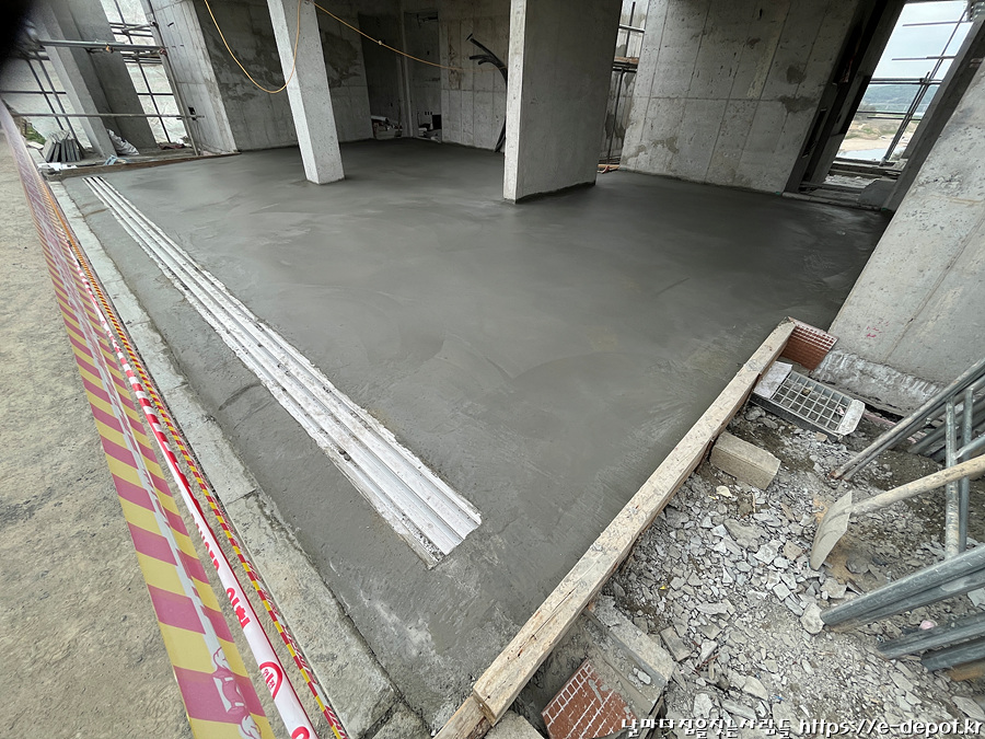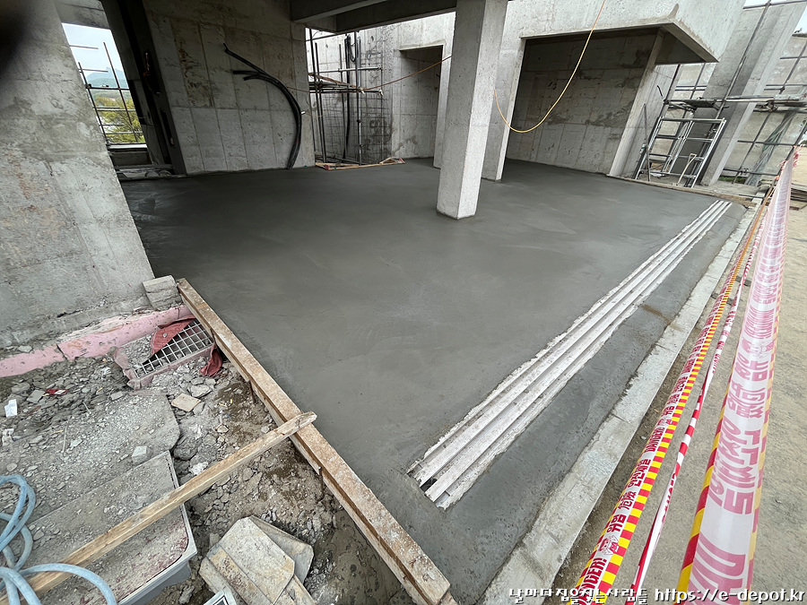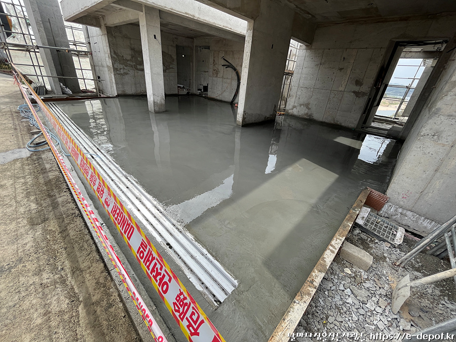 2층 주차장 누름콘크리트 타설.