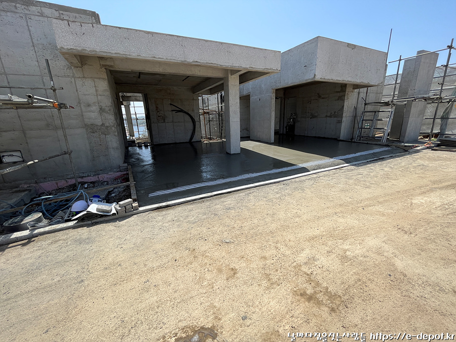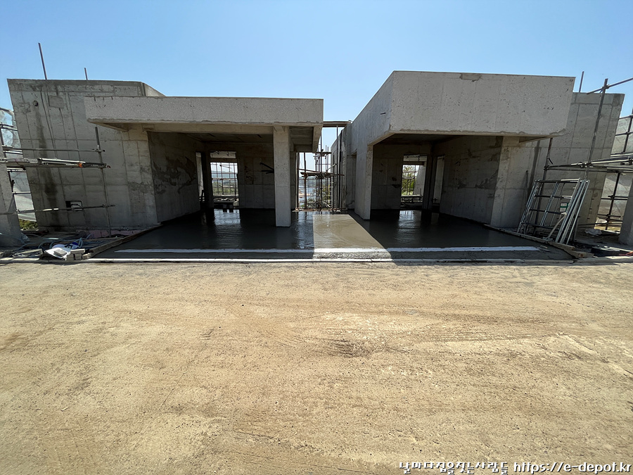 날마다 집을 짓는 사람들이 시공한 서울근교 연천 독채풀빌라 벨37의 누름콘크리트 타설 과정을 공사 사진과 함께 간략히 소개하고 풀빌라 펜션 이야기를 이어 가도록 하겠습니다.