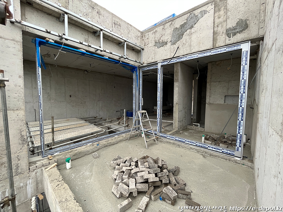 서울근교풀빌라 중에서 4계절 물놀이가 가능한 수영장이큰풀빌라 벨37 독채풀빌라의 샷시 설치과정을 공사사진과 함께 살펴보겠습니다.