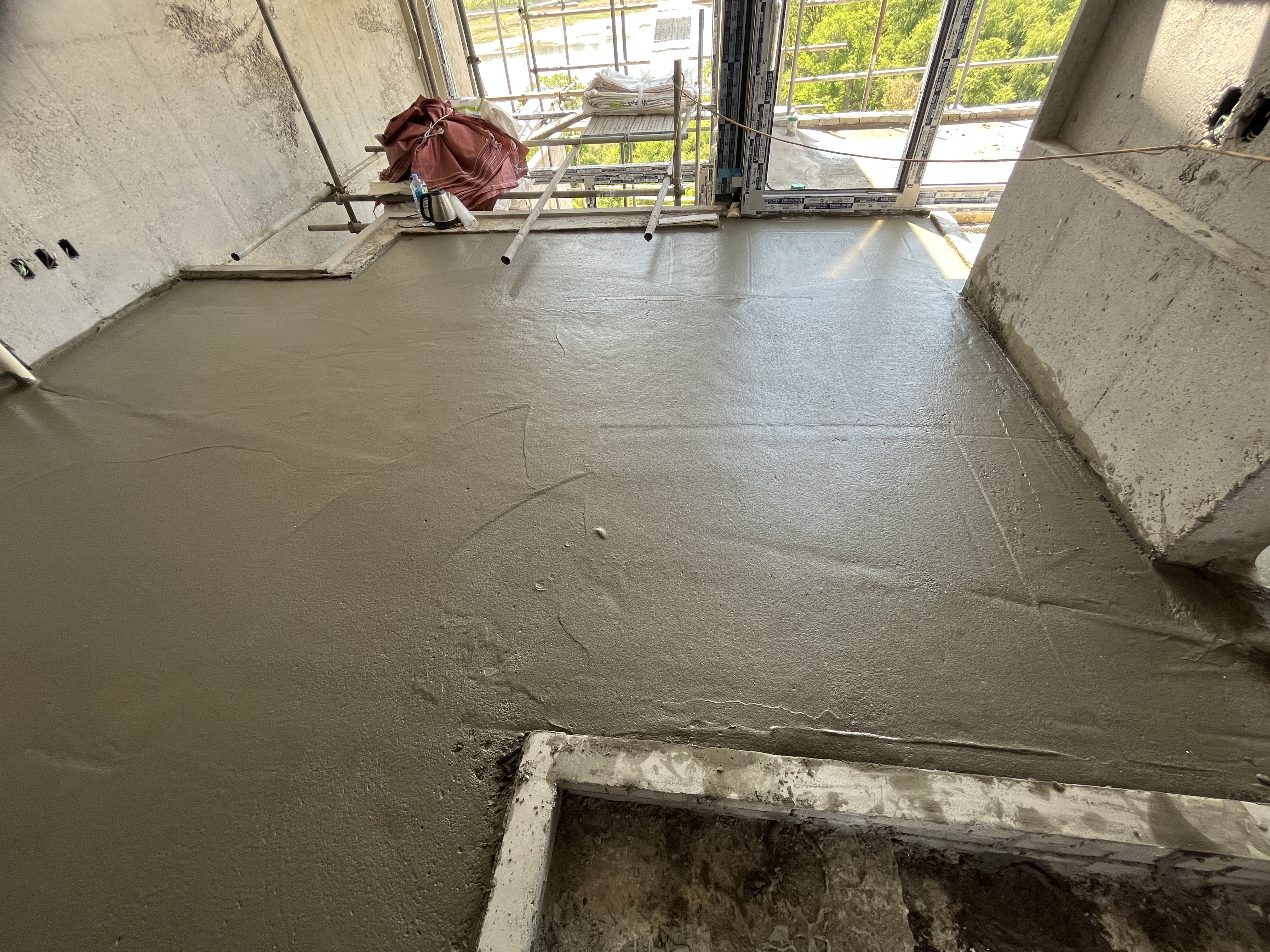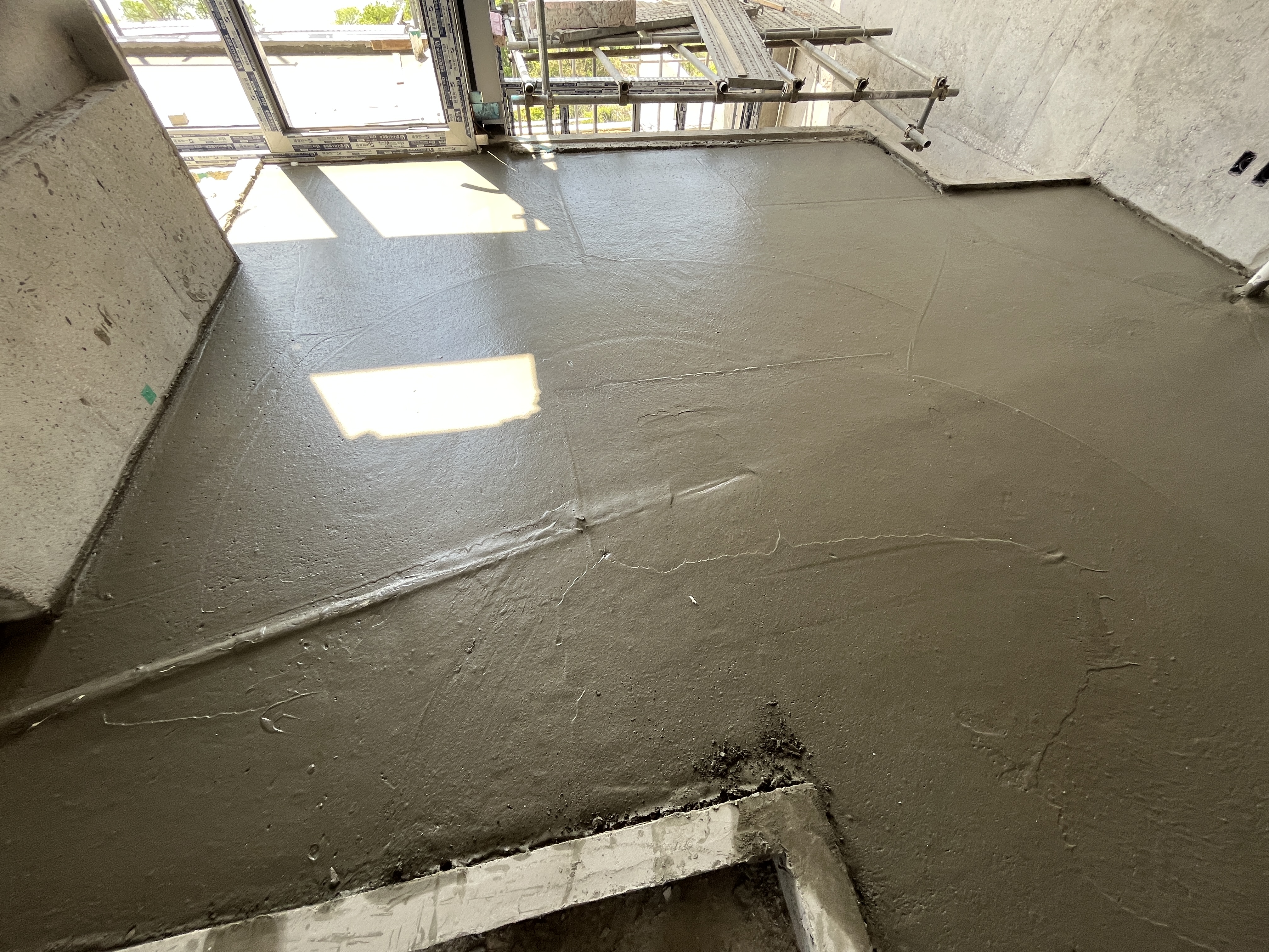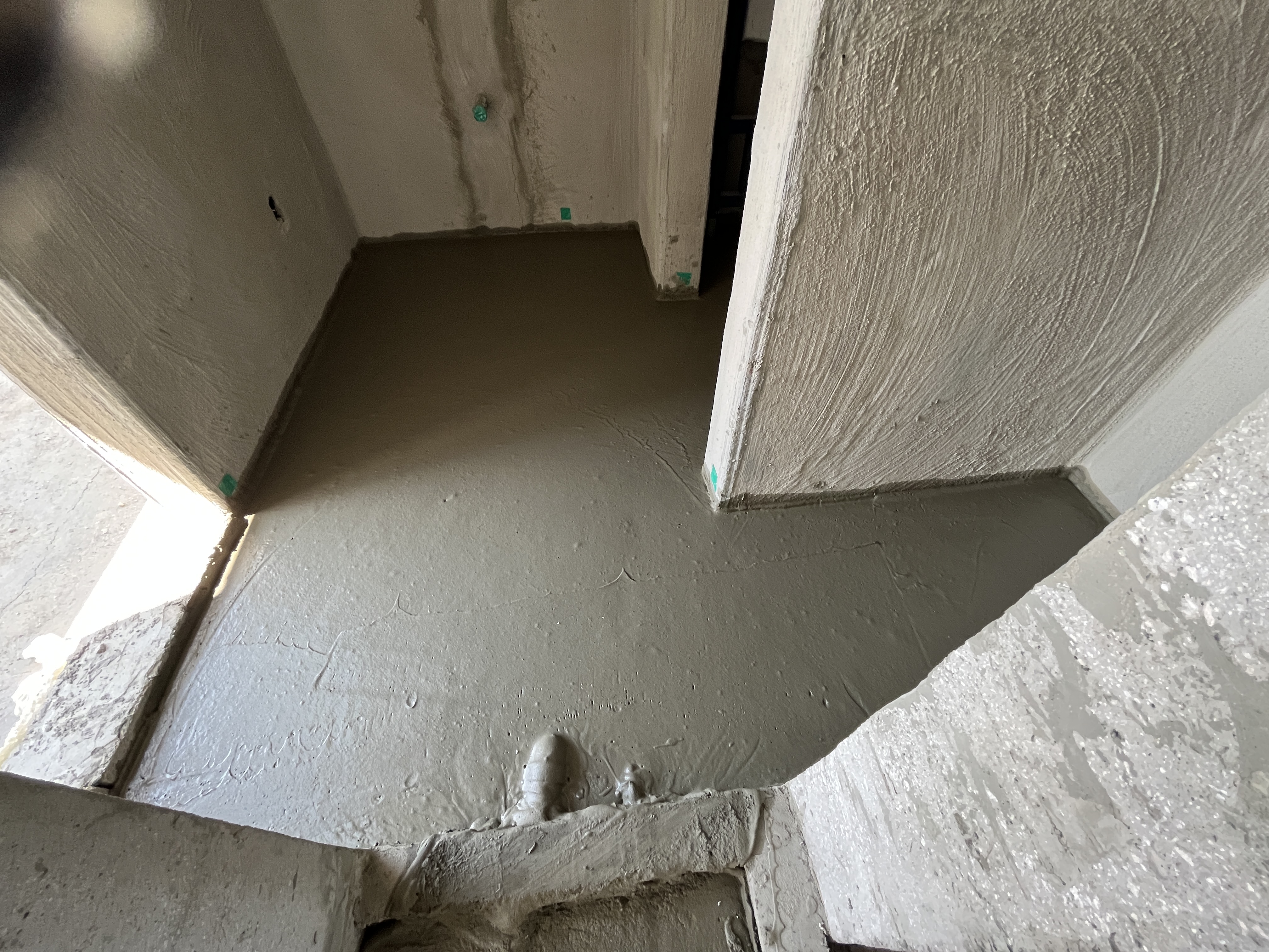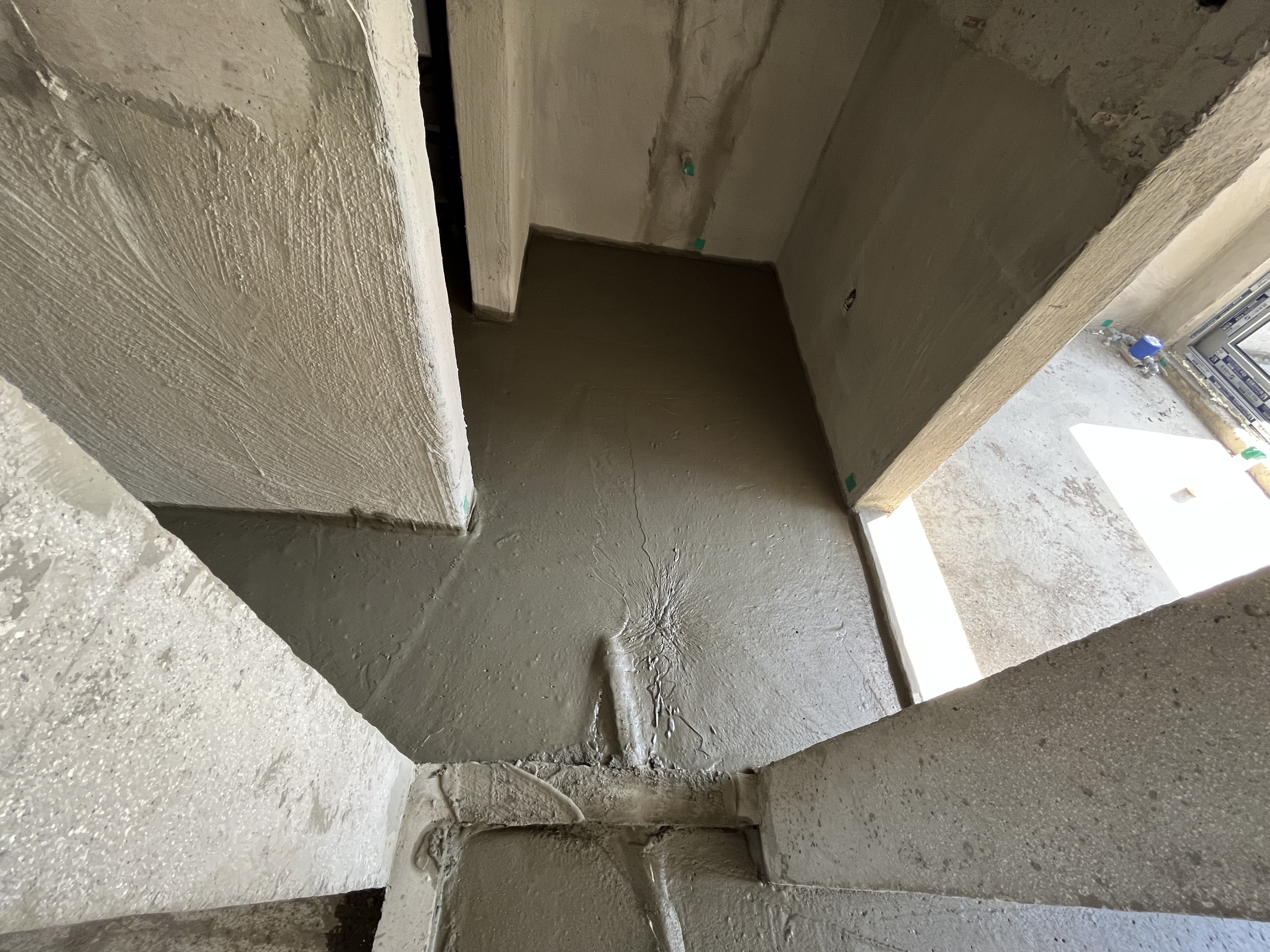 사진에서 벽 쪽에 청테이프 하단이 몰탈 마감선이고 청테이프 하단에서 단열기포타설면까지 50mm 정도 남아 있는 것을 확인할 수 있습니다.