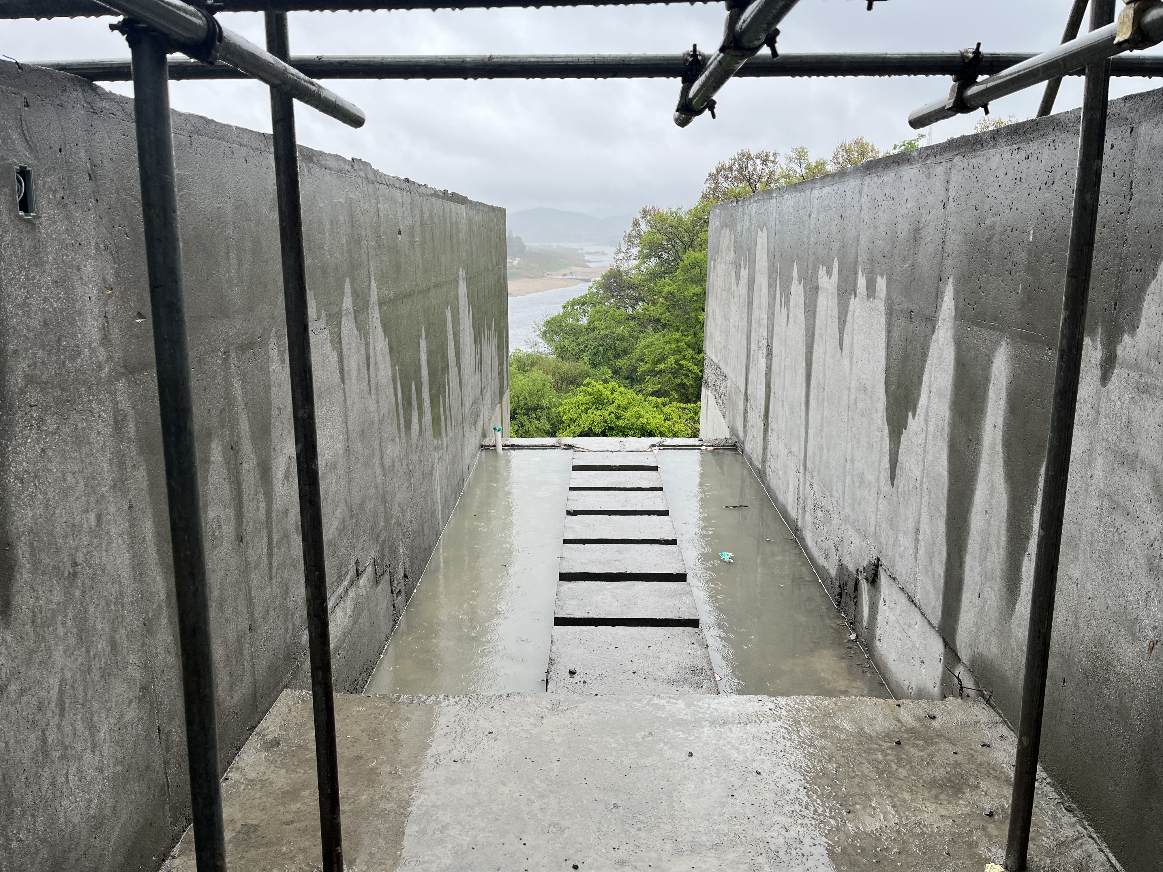 천창에 유리를 끼우기 전이라 내리는 비에 무방비.. 하지만 콘크리트골조는 물을 먹어도 끄덕 없지요..ㅎ