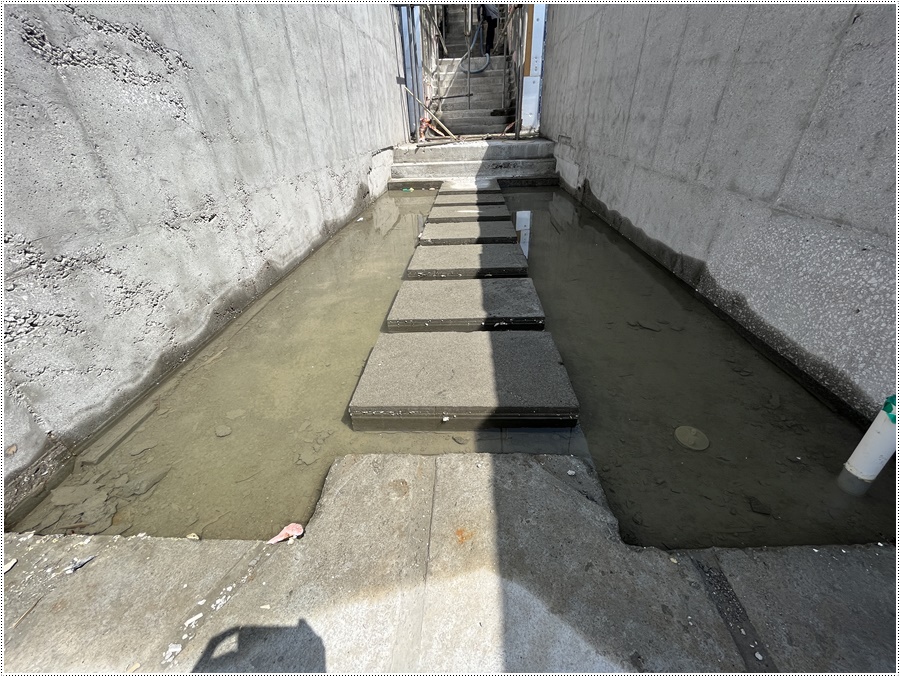 바닥 몰탈 타설 전 수영장 계단 부위
