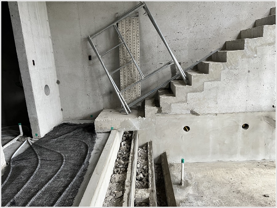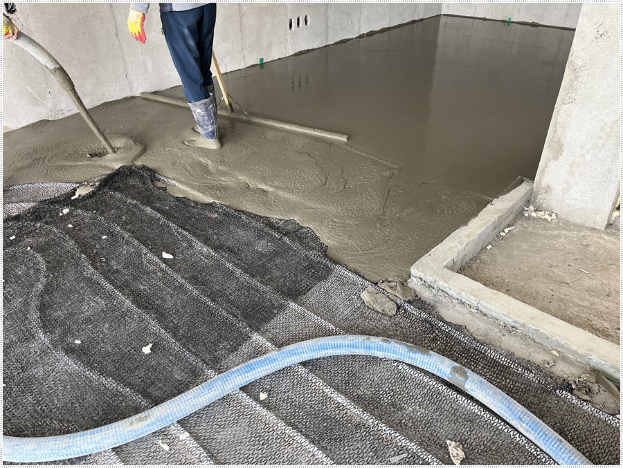 날마다집을짓는사람들의 서울 근교 커플풀빌라 가족여행 추천지 연천 독채풀빌라 벨37 신축일지. 바닥몰탈타설 과정이었습니다