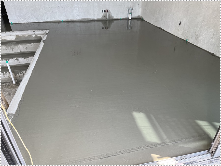 물이 어느정도 빠지면 몆차례 쇠흙손 면고르기 작업을 하면 바닥몰탈작업은 마무리 됩니다.