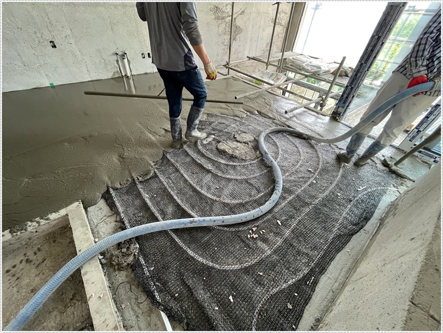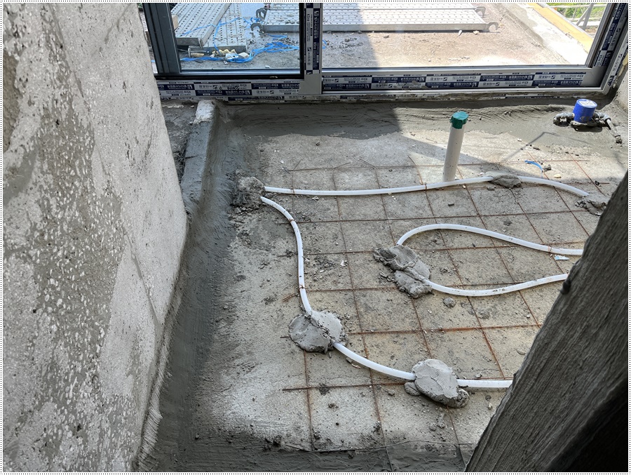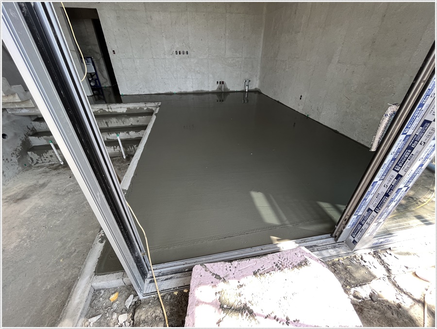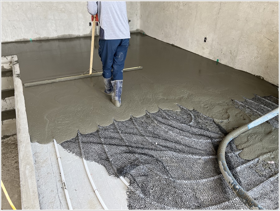 날마다집을짓는사람들의 서울 근교 커플풀빌라 가족여행 추천지 연천 독채풀빌라 벨37 신축일지. 바닥몰탈타설 과정이었습니다