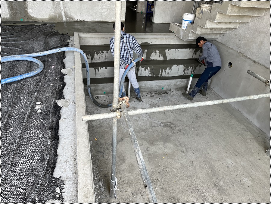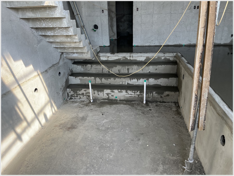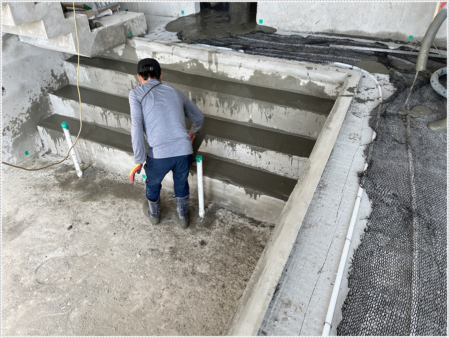 바닥 몰탈 타설 전 수영장 계단 부위