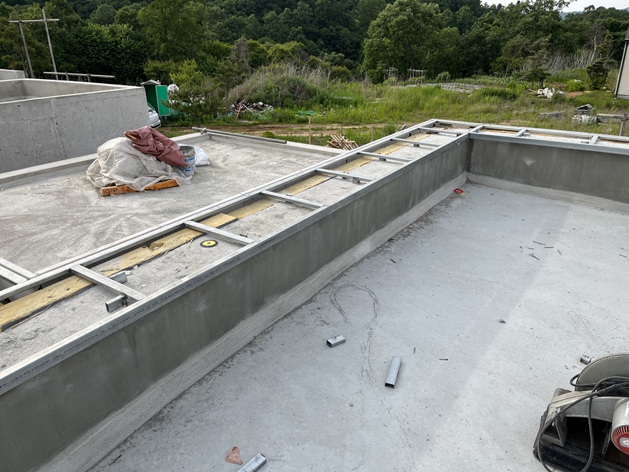날마다집을짓는사람들의 리버뷰 전망좋은 서울근교 연천 독채 풀빌라 신축일지.지붕두겁시공 및 노출우레탄 도포작업 과정이었습니다.