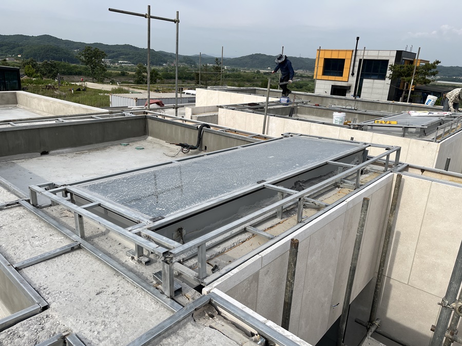 이번에는 옹벽 라임스톤 시공 후 상부의 누수를 방지하기 위한 두겁 시공과 지붕층 노출우레탄 도포작업 관련해서 알아 보겠습니다.