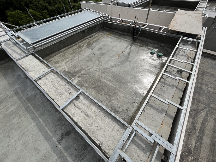 전체적으로 각파이프 하지 작업을 마친 후 징크 마감작업전에 노출 우레탄 방수 작업을 진행하였습니다. 징크작업을 먼저 마감하게 되면 우레탄 작업시 오염을 피할 수 가 없고 우레탄 작업이 번거로워서 각파이프 작업만 해놓고 우레탄 작업을 먼저 끝내는것이 좋습니다.