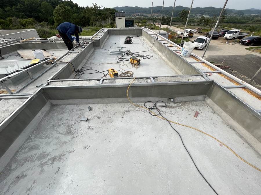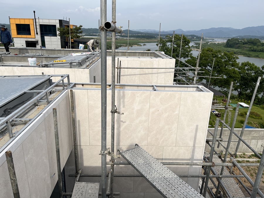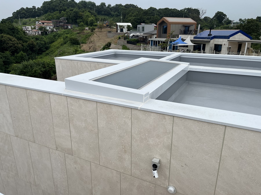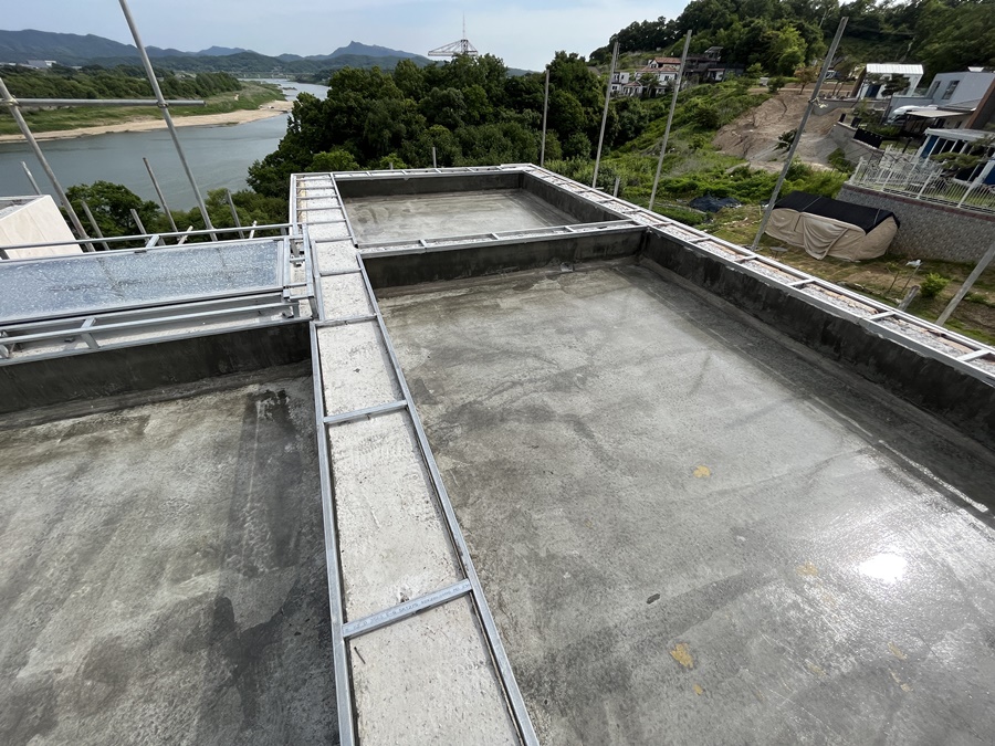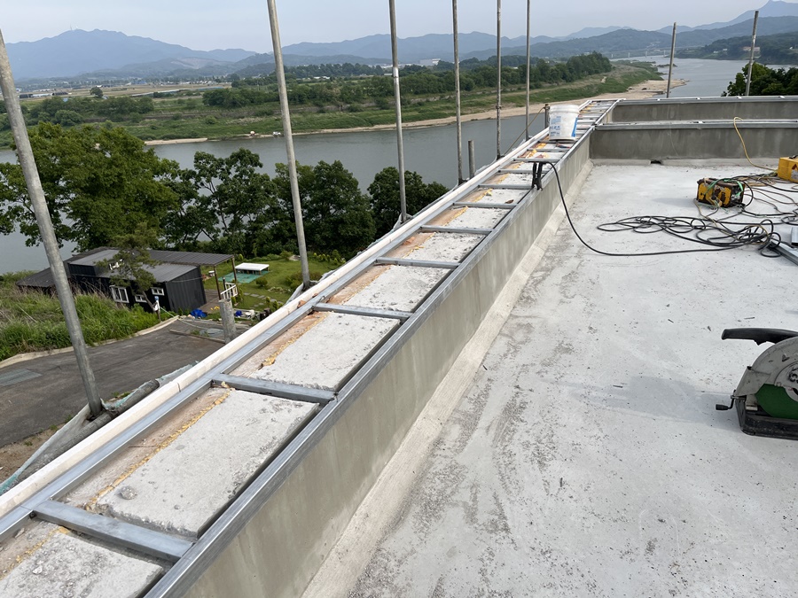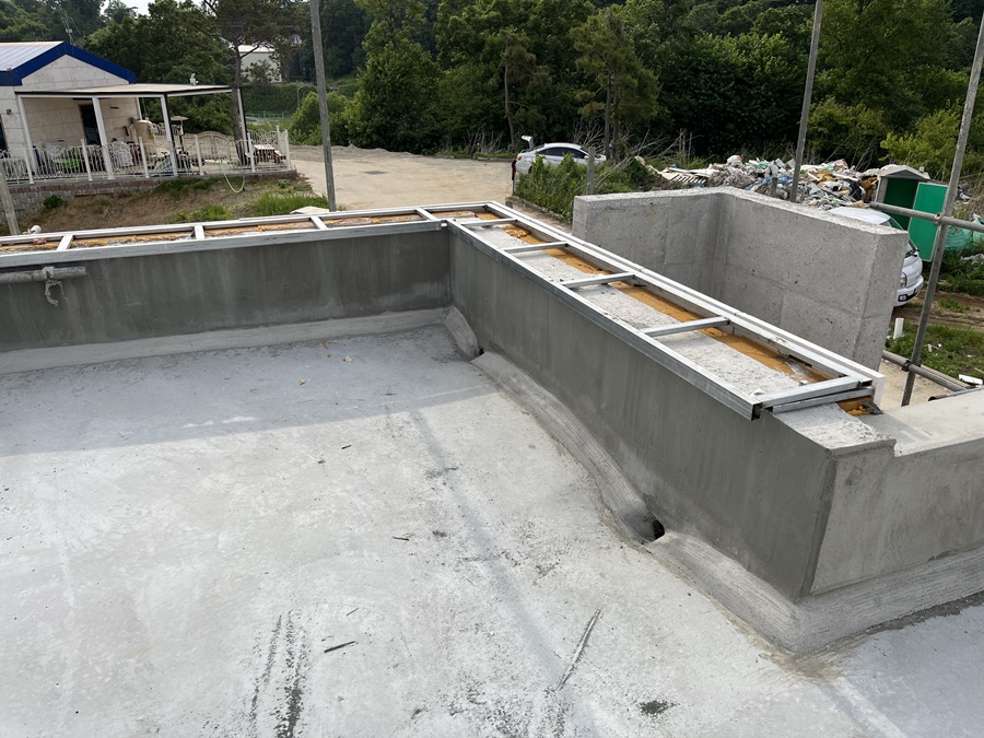 이번에는 옹벽 라임스톤 시공 후 상부의 누수를 방지하기 위한 두겁 시공과 지붕층 노출우레탄 도포작업 관련해서 알아 보겠습니다.