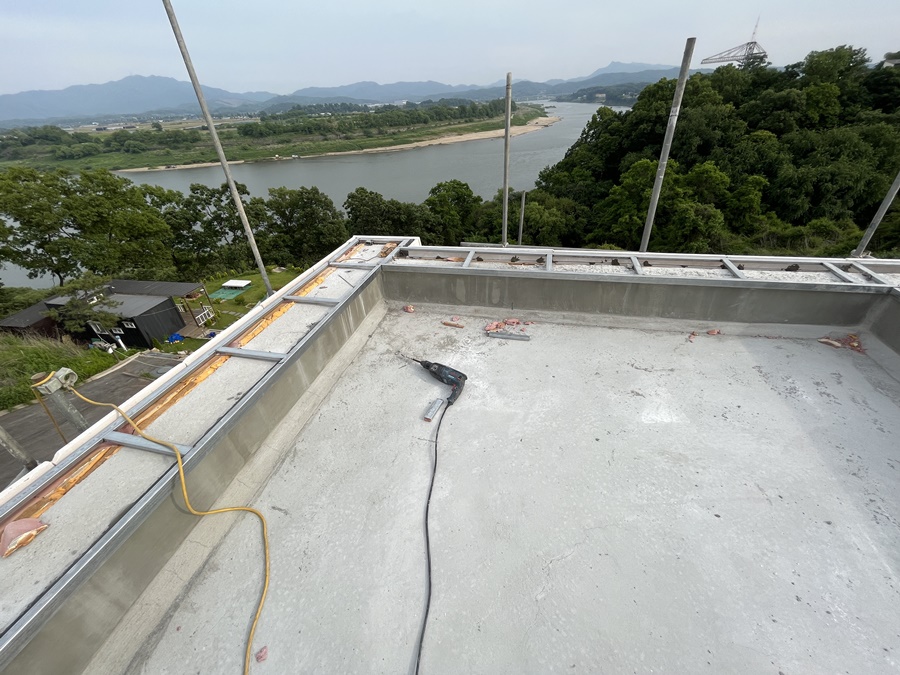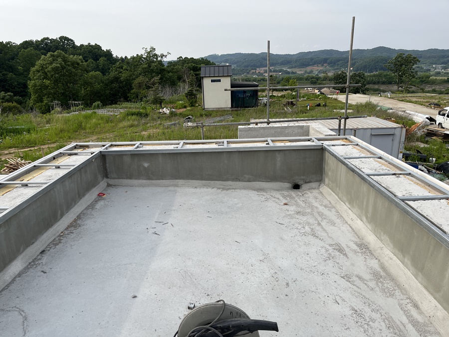 날마다집을짓는사람들의 리버뷰 전망좋은 서울근교 연천 독채 풀빌라 신축일지.지붕두겁시공 및 노출우레탄 도포작업 과정이었습니다.