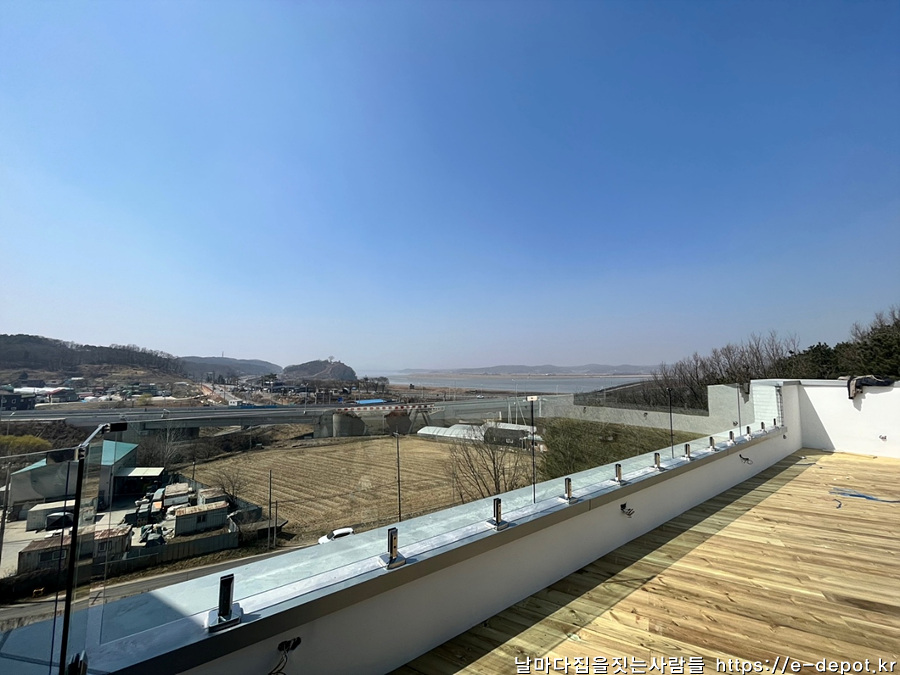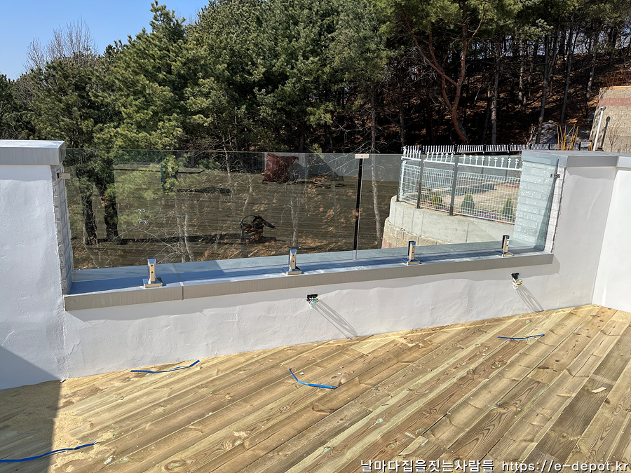 2층 테라스 전망을 고려하여 강화유리 난간을 설치하였습니다.