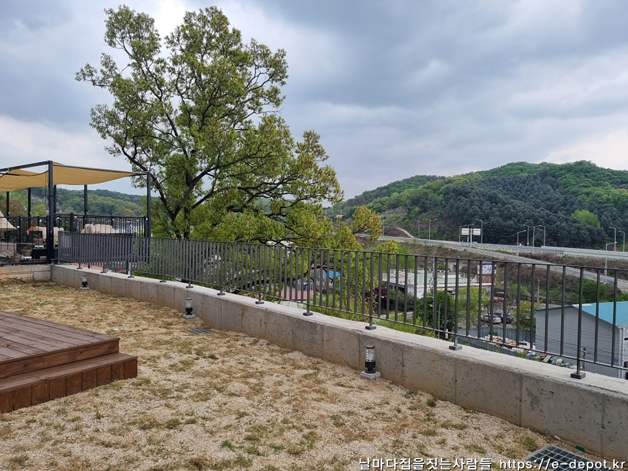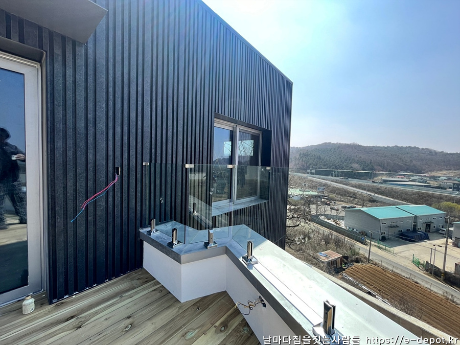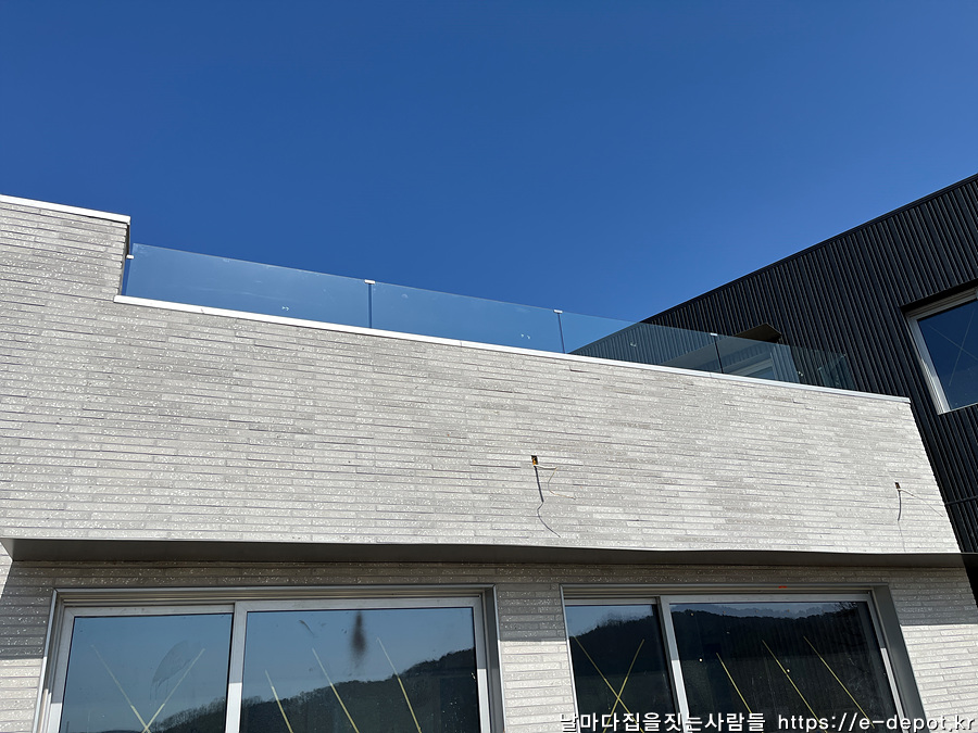 2층 테라스 전망을 고려하여 강화유리 난간을 설치하였습니다.