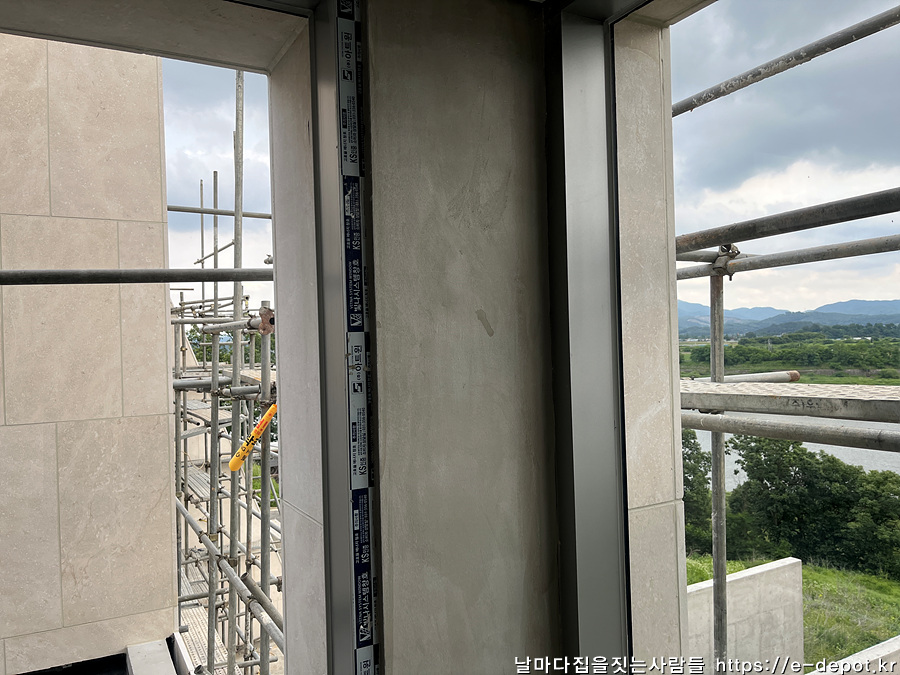 바로 교정하도록 요청했으나 내부 마감전까지 처리가 안되어 인테리어 마감 후 유리를 다시 교정하느라 시공자들이 고생한 경우입니다.