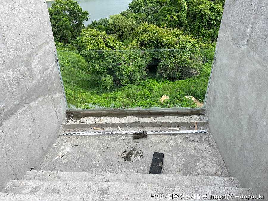 일반 난간보다 강화유리 난간을 설치해서 최대한의 시야를 확보하는데....