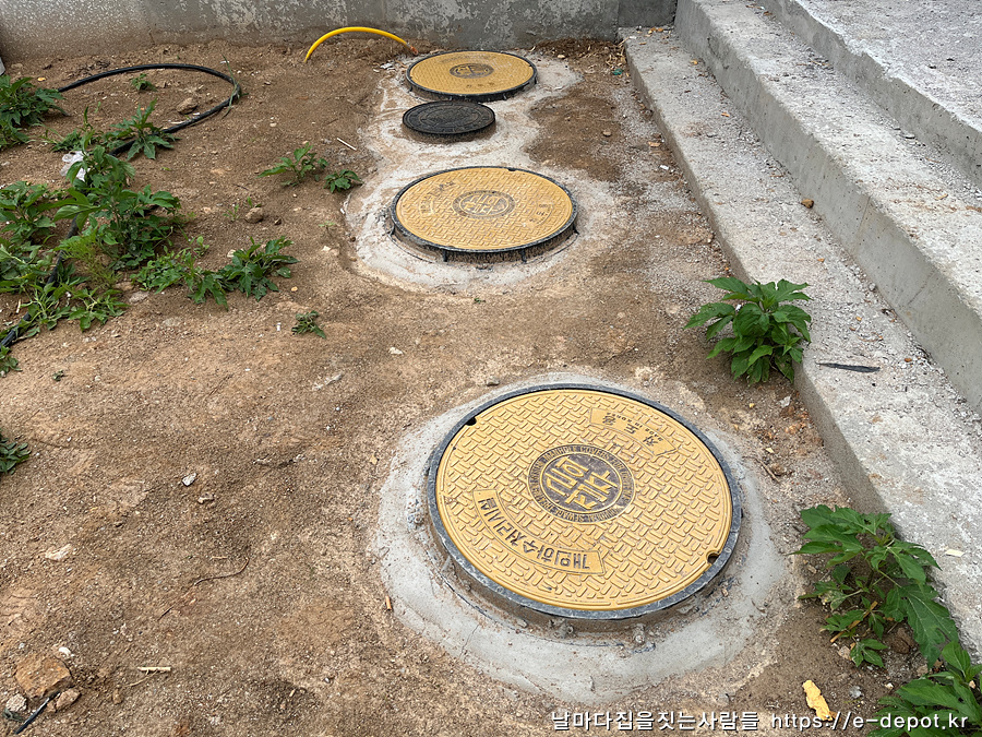 우기에 지붕물을 소화하기 위한 하부 맨홀 설치 사진입니다.