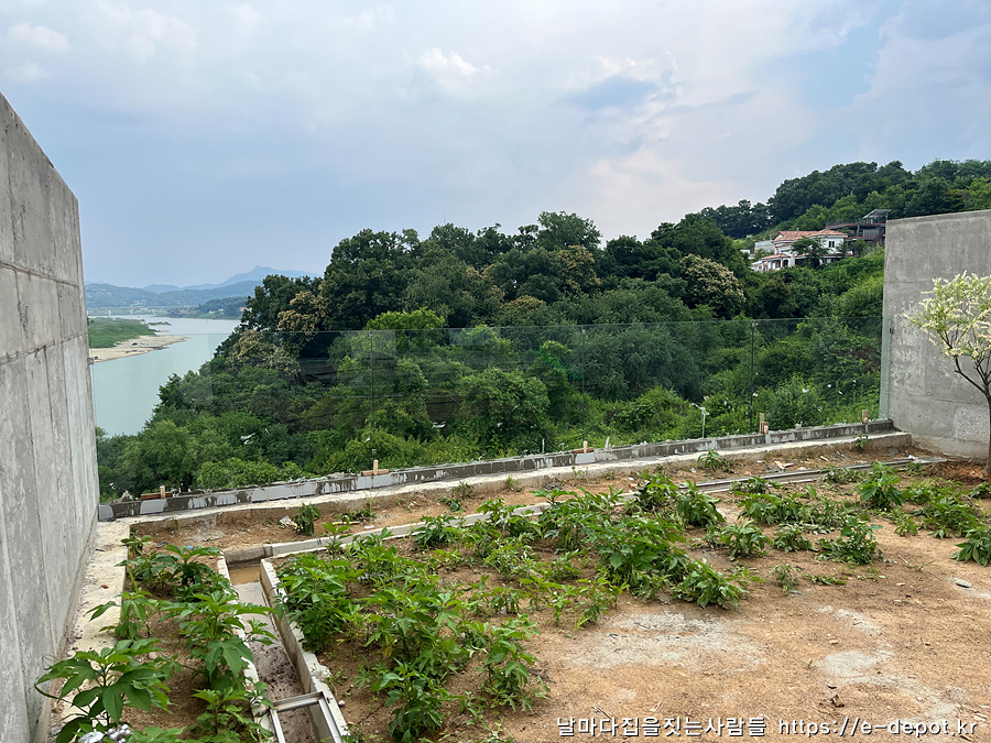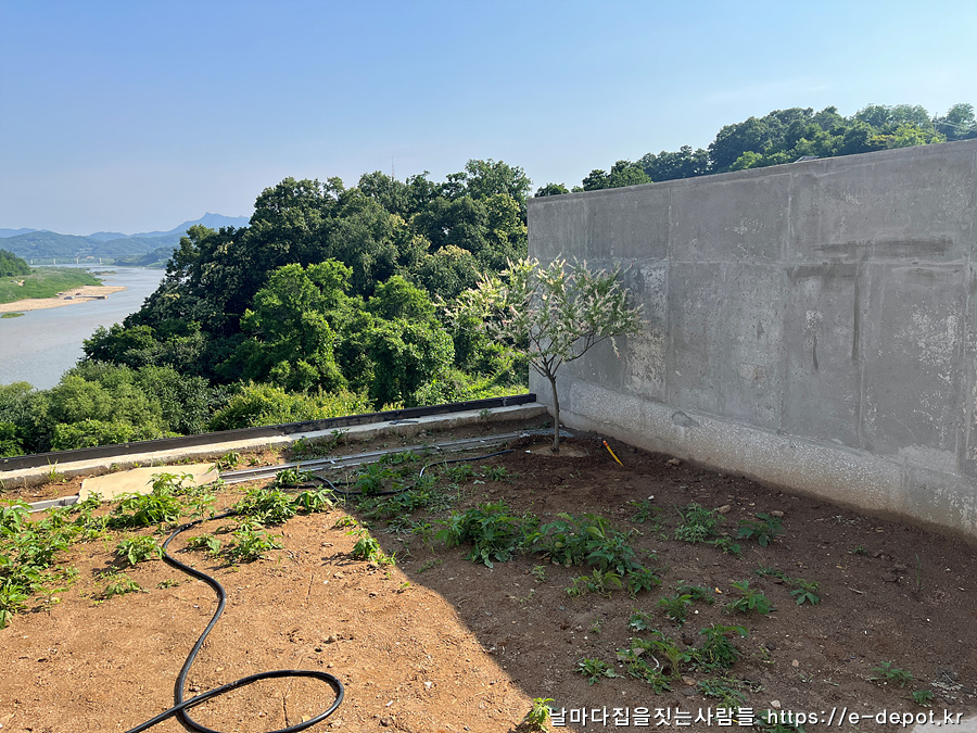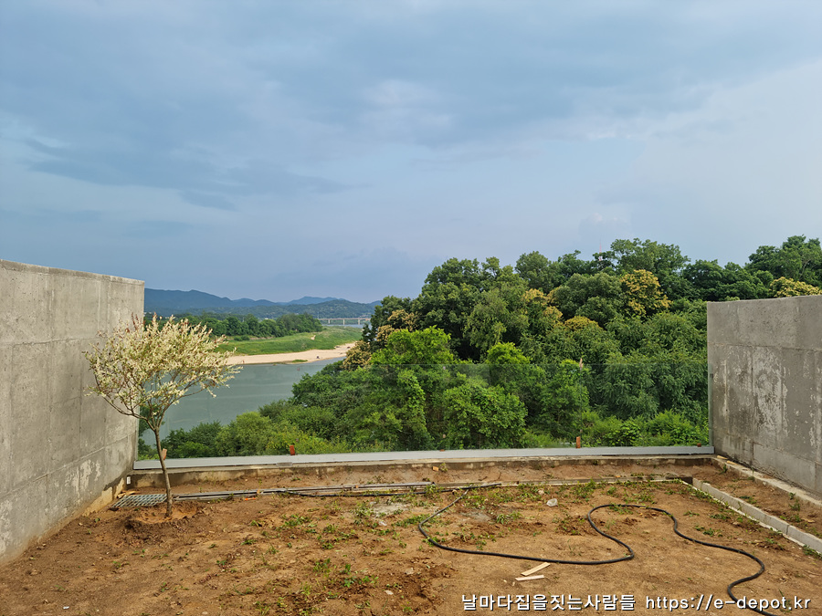 연천 동동마을에 임진강을 품고 태어난 벨37 독채 풀빌라의 전망 좋은 뷰를 최대한 살리기 위해 제작 설치한 안전난간과 사계절 푸르른 모습을 잃지 않는 사철나무 이식 과정을 간략히 살펴보겠습니다.