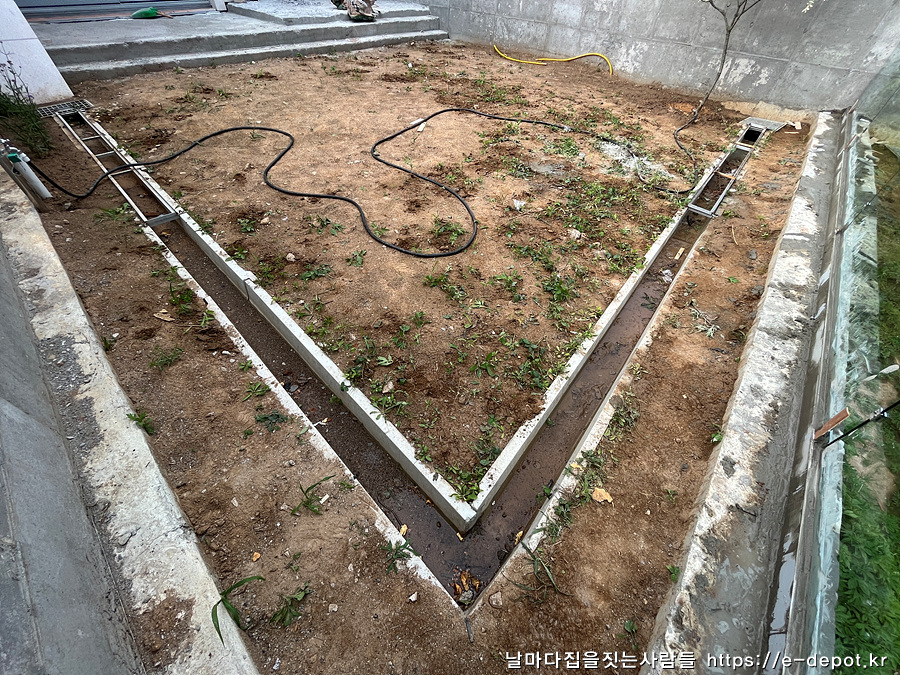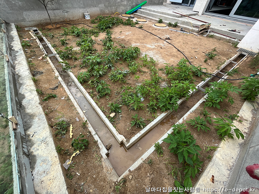 여름철 비가 많이 올 때를 대비해서 정원 사이드에 개방형 수로관을 설치하였습니다.