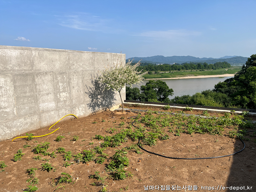 임진강 전망이 좋은 연천 동동마을 풀빌라 펜션 벨37 독채 풀빌라의 외부 안전난간 설치와 조경수 이식 관련 포스팅입니다.