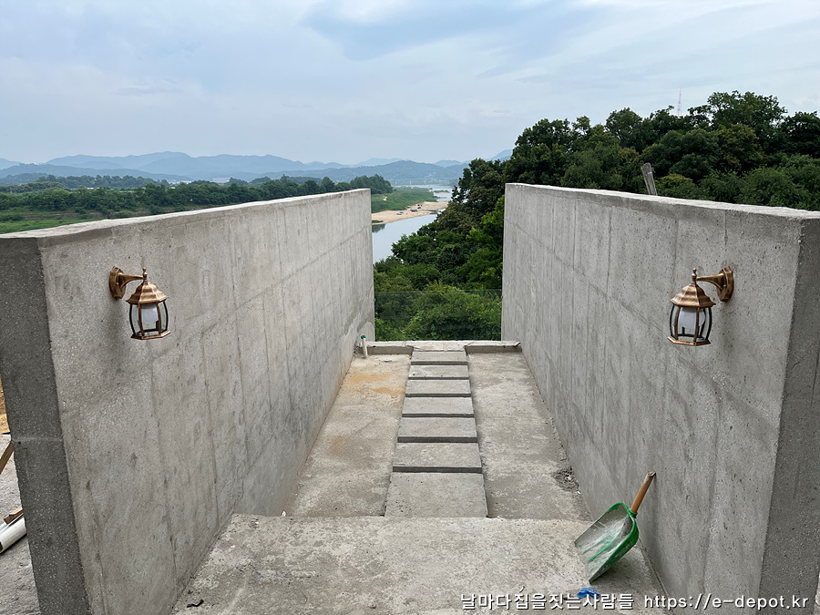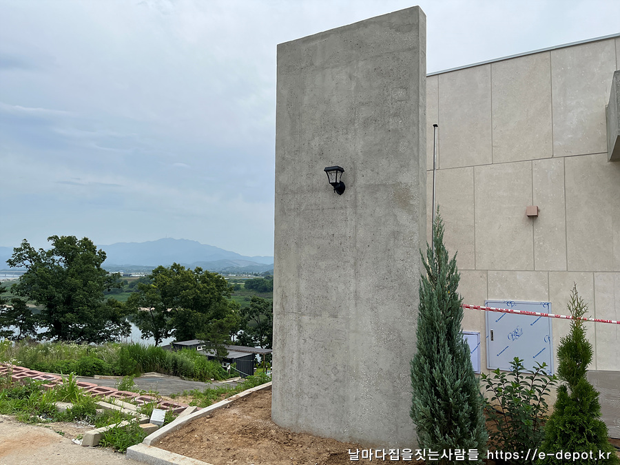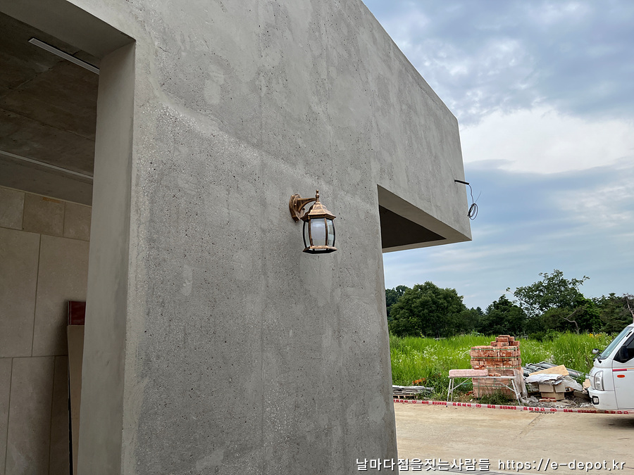 외부 가스통을 가리기 위한 디자인 벽의 초기 벽등 설치.