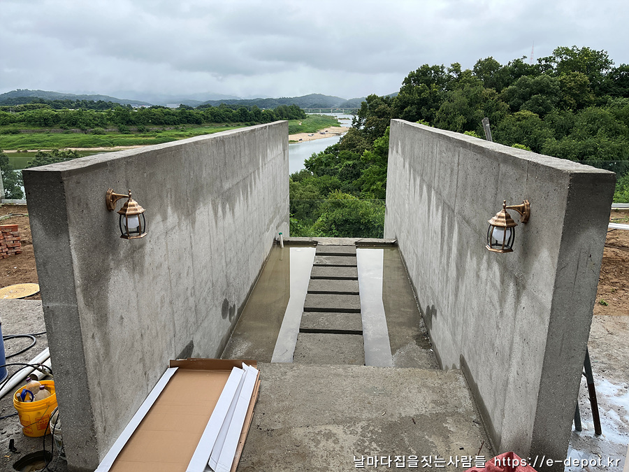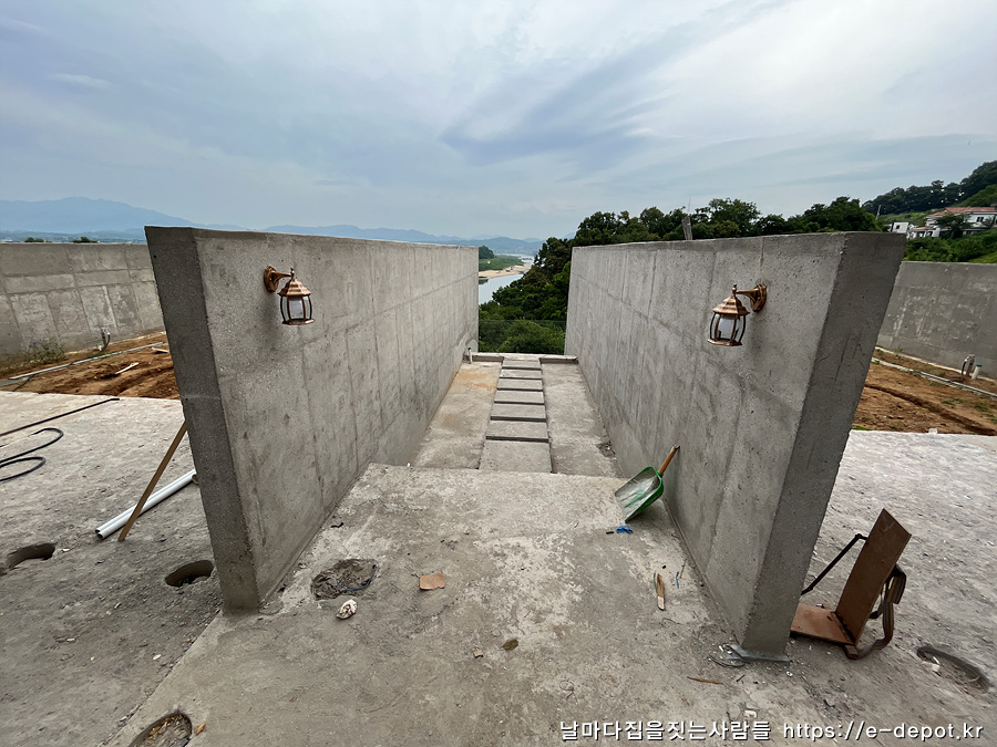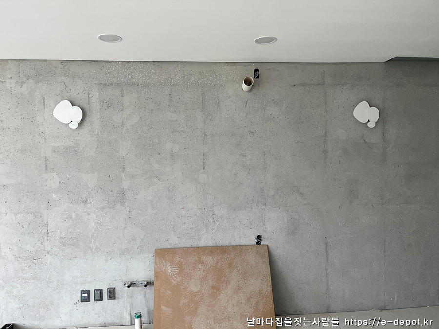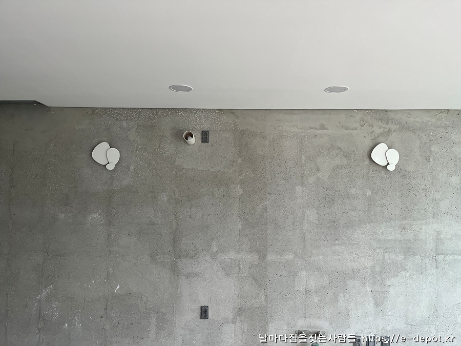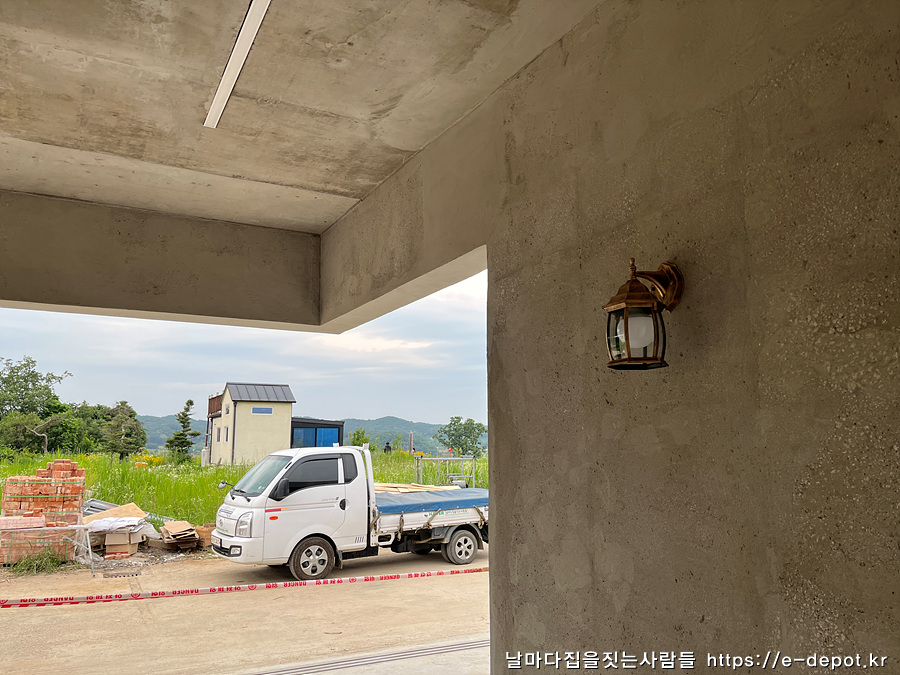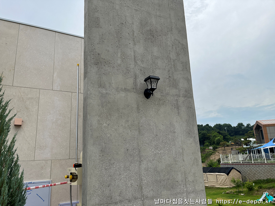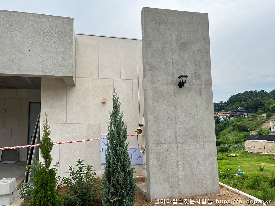 외부 가스통을 가리기 위한 디자인 벽의 초기 벽등 설치.
