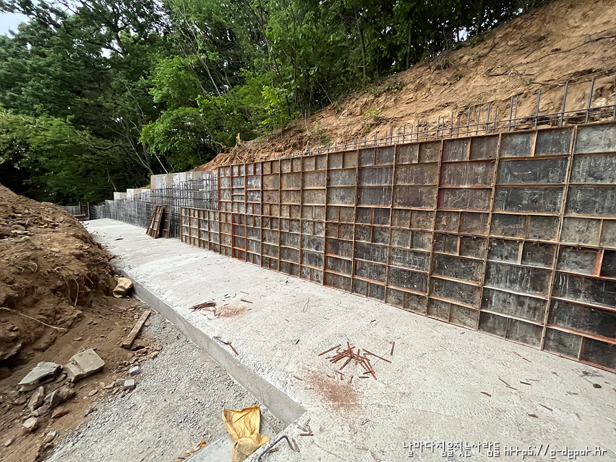 지난 옹벽 기초공사에 이어서 옹벽공사 과정을 공사사진과 함께 살펴 보겠습니다.