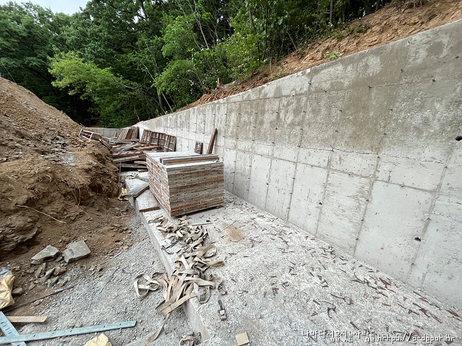 날마다 집을 짓는 사람들의 고양시 내유동 전원주택 철근콘크리트 L형 옹벽 거푸집 해체 과정이었습니다.