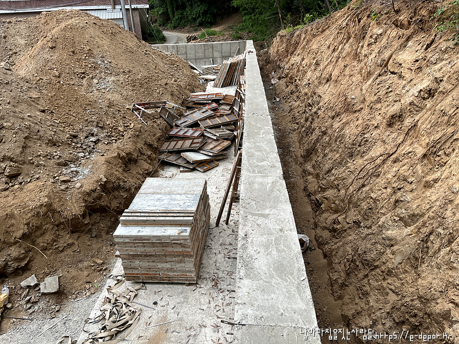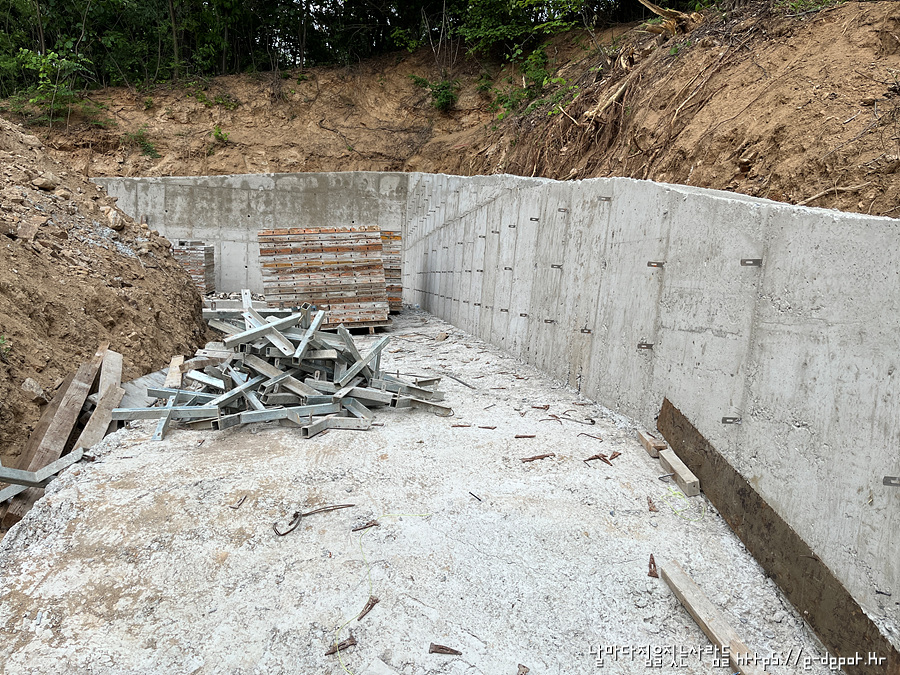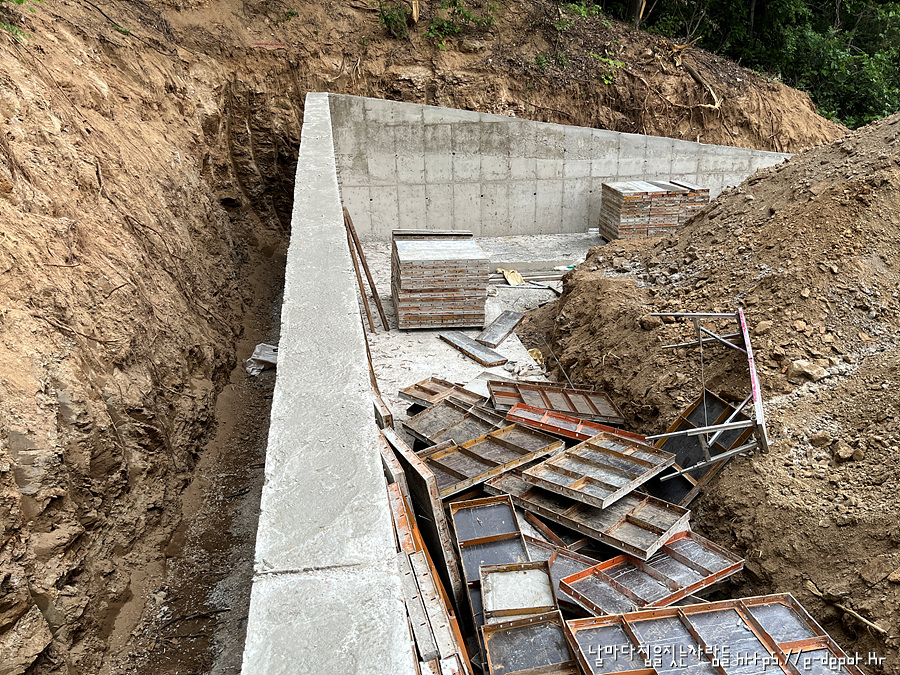 날마다 집을 짓는 사람들의 고양시 내유동 전원주택 철근콘크리트 L형 옹벽 거푸집 해체 과정이었습니다.