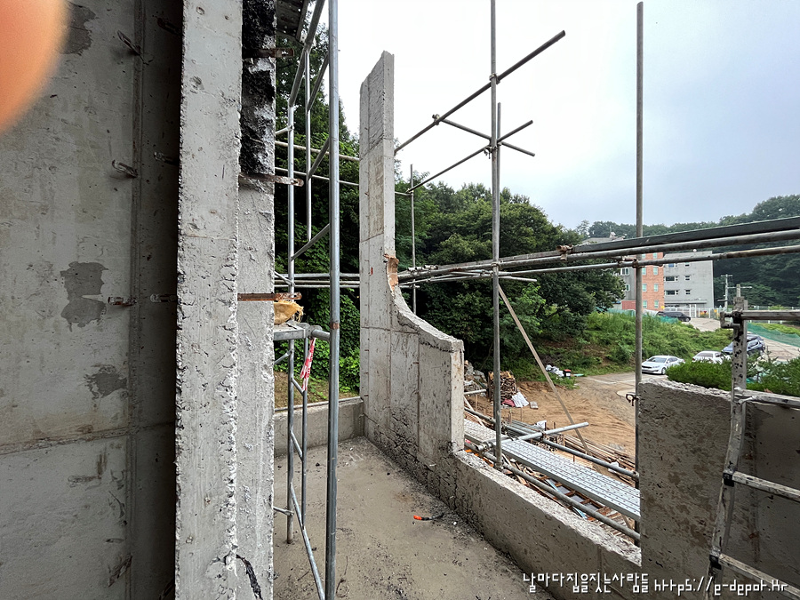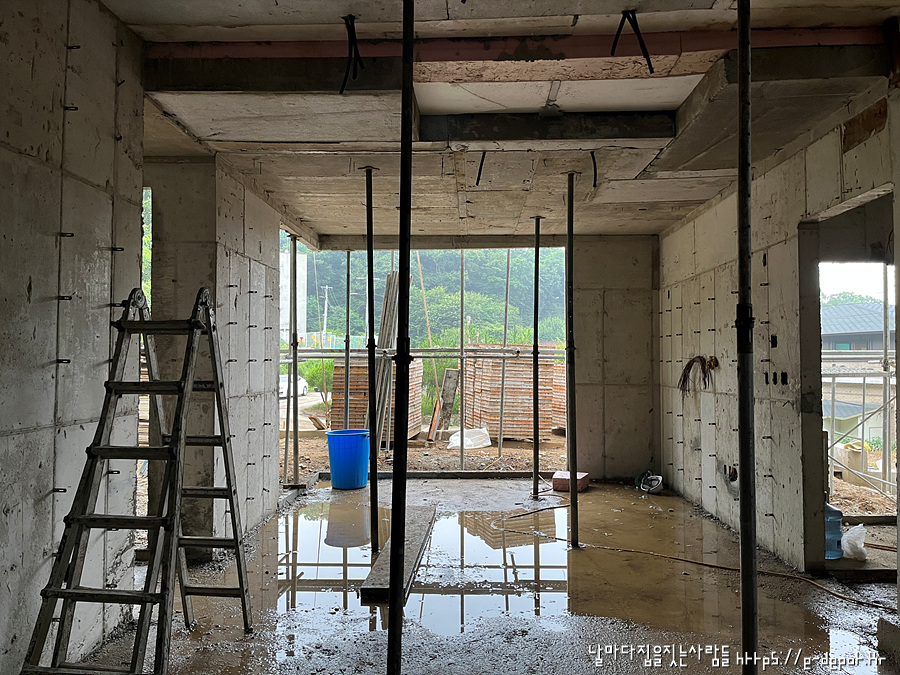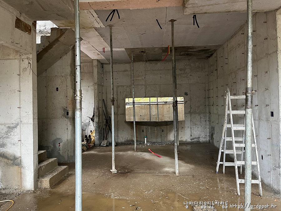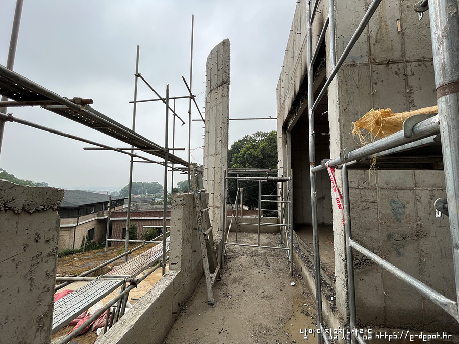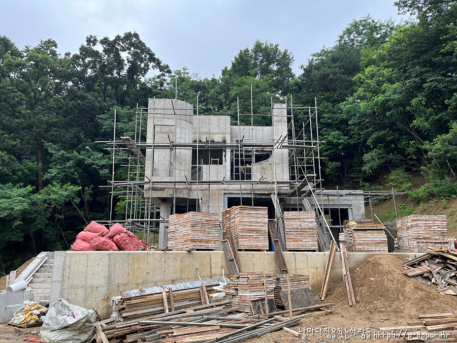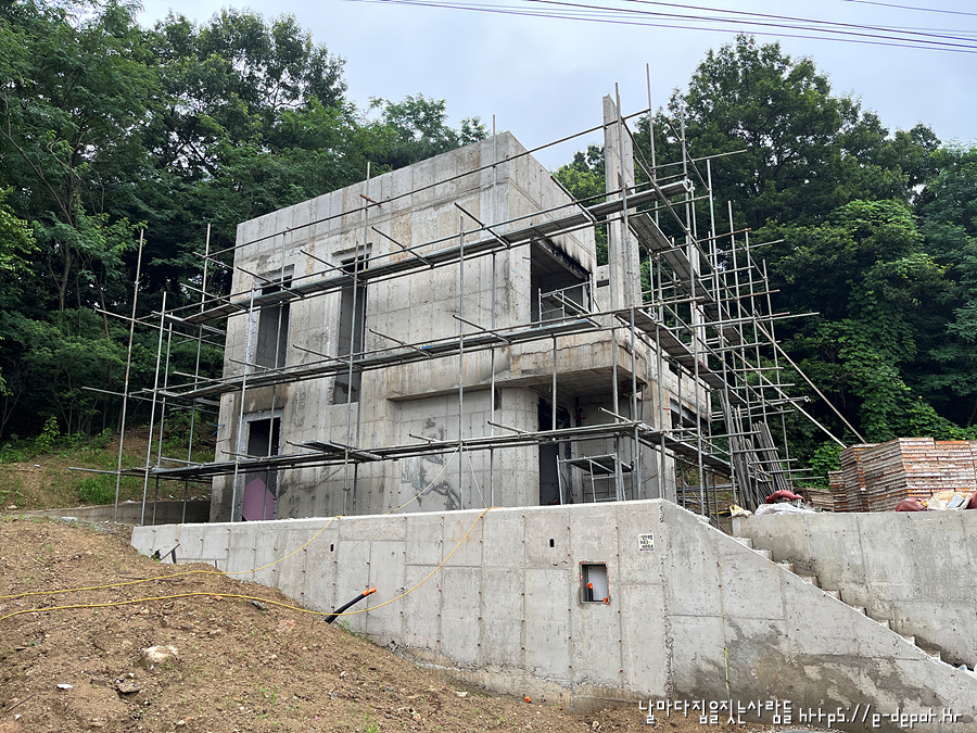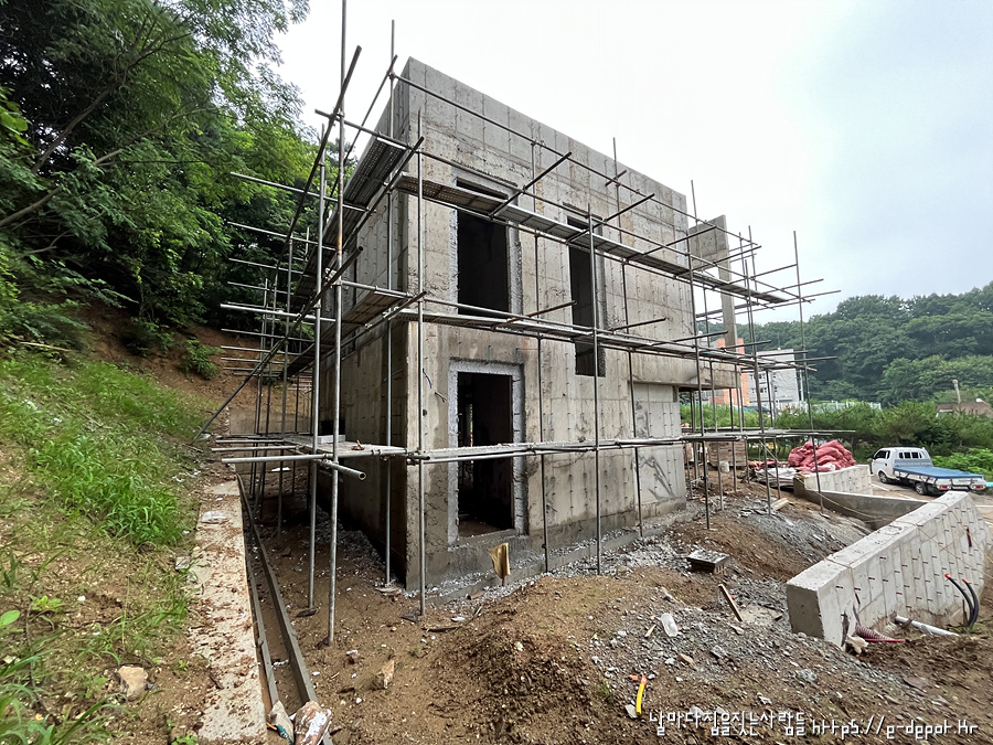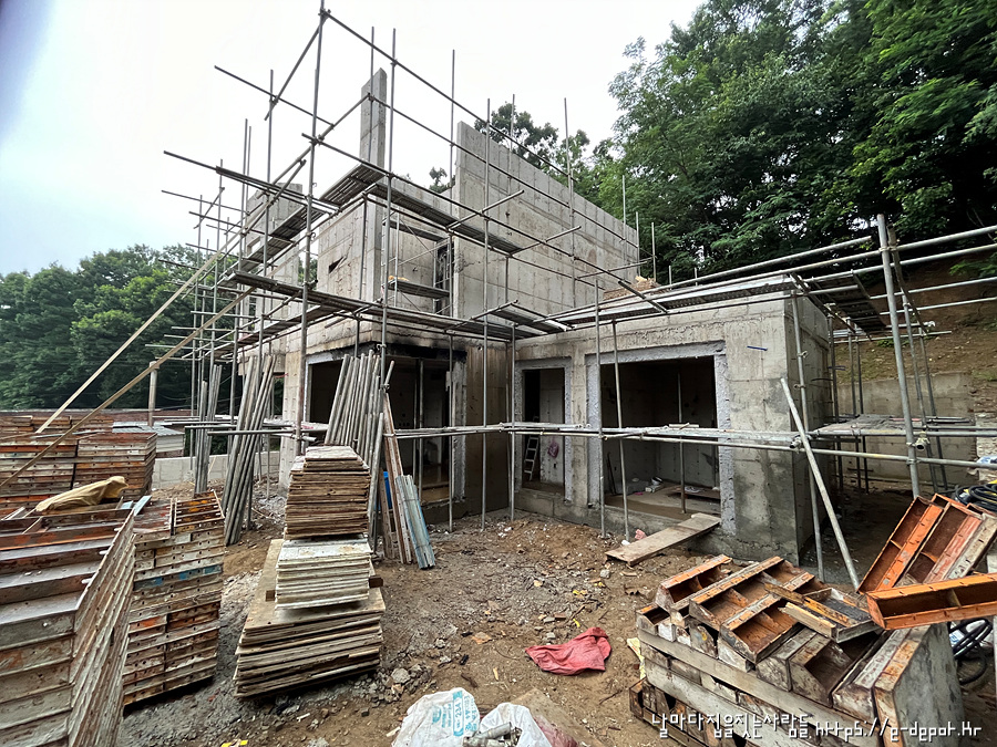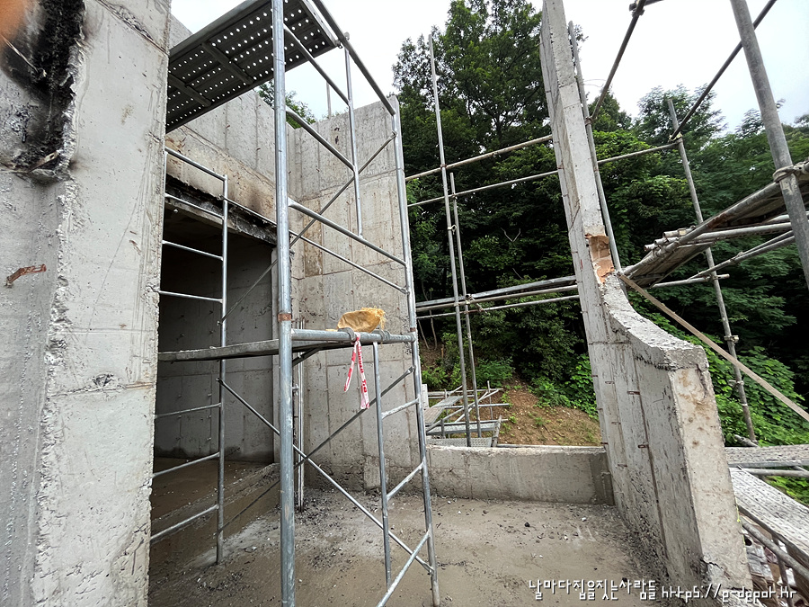 날마다 집을 짓는 사람들의 고양시 내유동 전원주택 시공사례. 철근 콘크리트조 거푸집 해체 후 골조 양생 과정이었습니다.