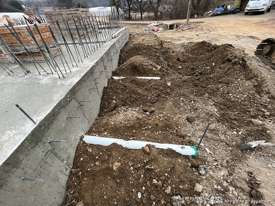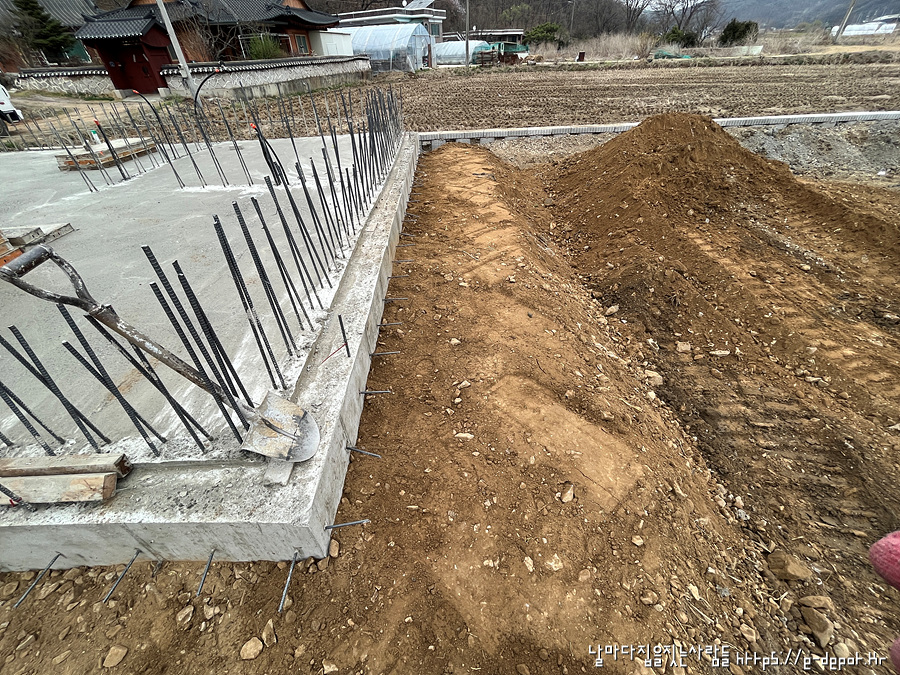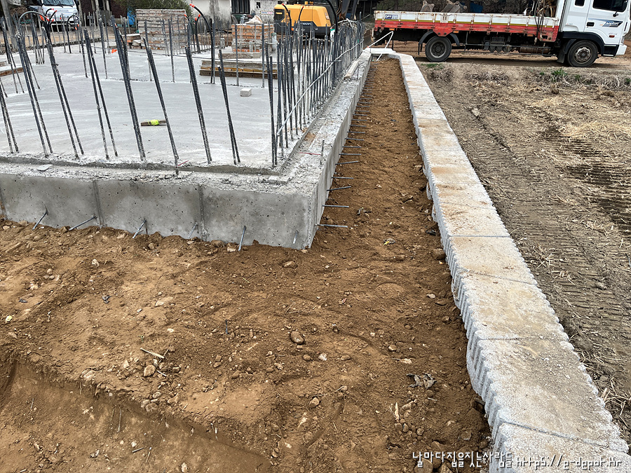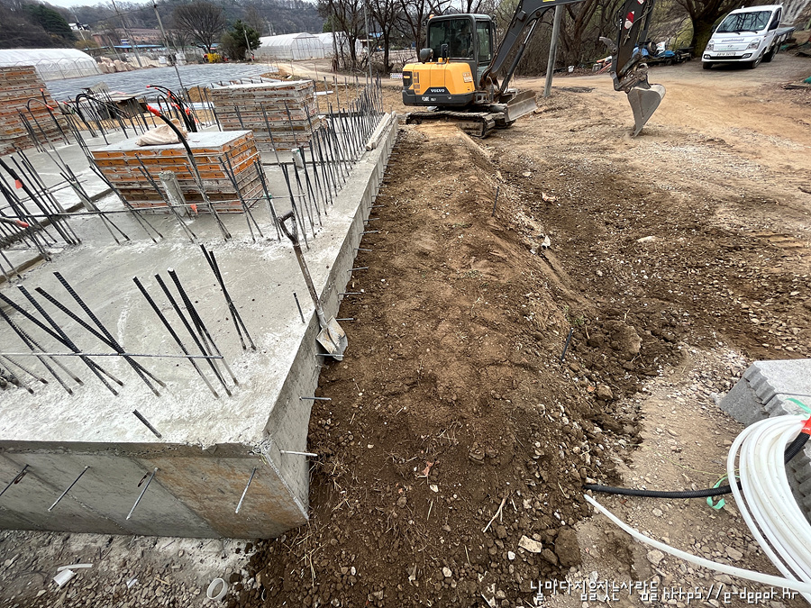 지난 포스팅에 이어 오늘은 기초 콘크리트 타설 후 되메우기 과정입니다.