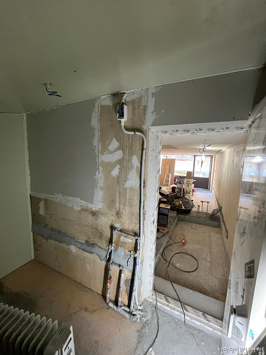이번에 포스팅 할 내용은 새로 신설한 화장실과 주방, 그리고 벽체와 천정의 유럽미장 시공 과정입니다.