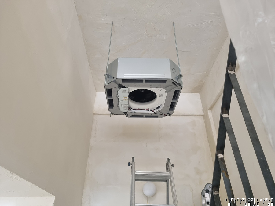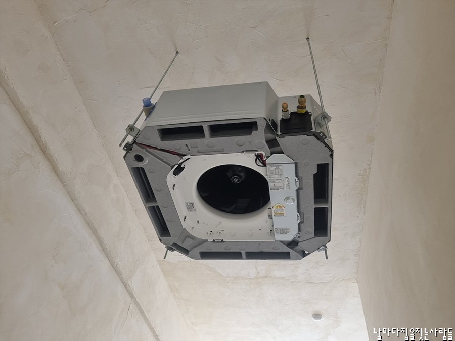 유럽미장 마감 후 계단실 천정에 4 way 시스템 냉난방기 설치