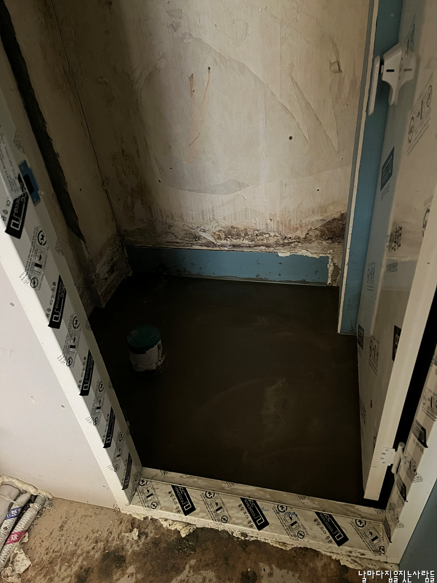 위생 배관을 마치고 몰탈타설 후 1차 시멘트 액체 방수를 하였습니다.