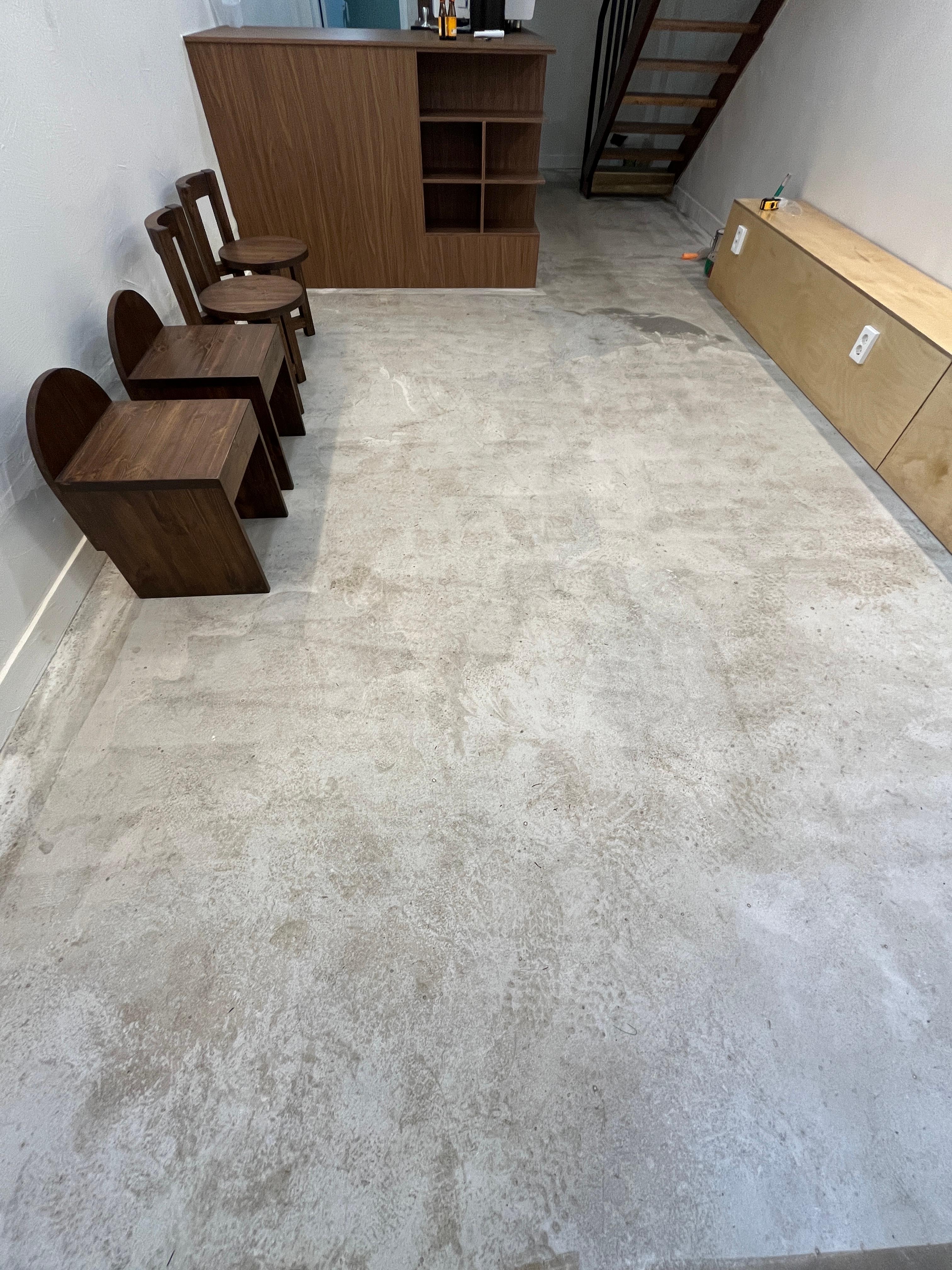 수평몰탈 양생 후 에폭시 하도를 도포하여 빈티지 느낌 그대로 마감을 하였습니다.