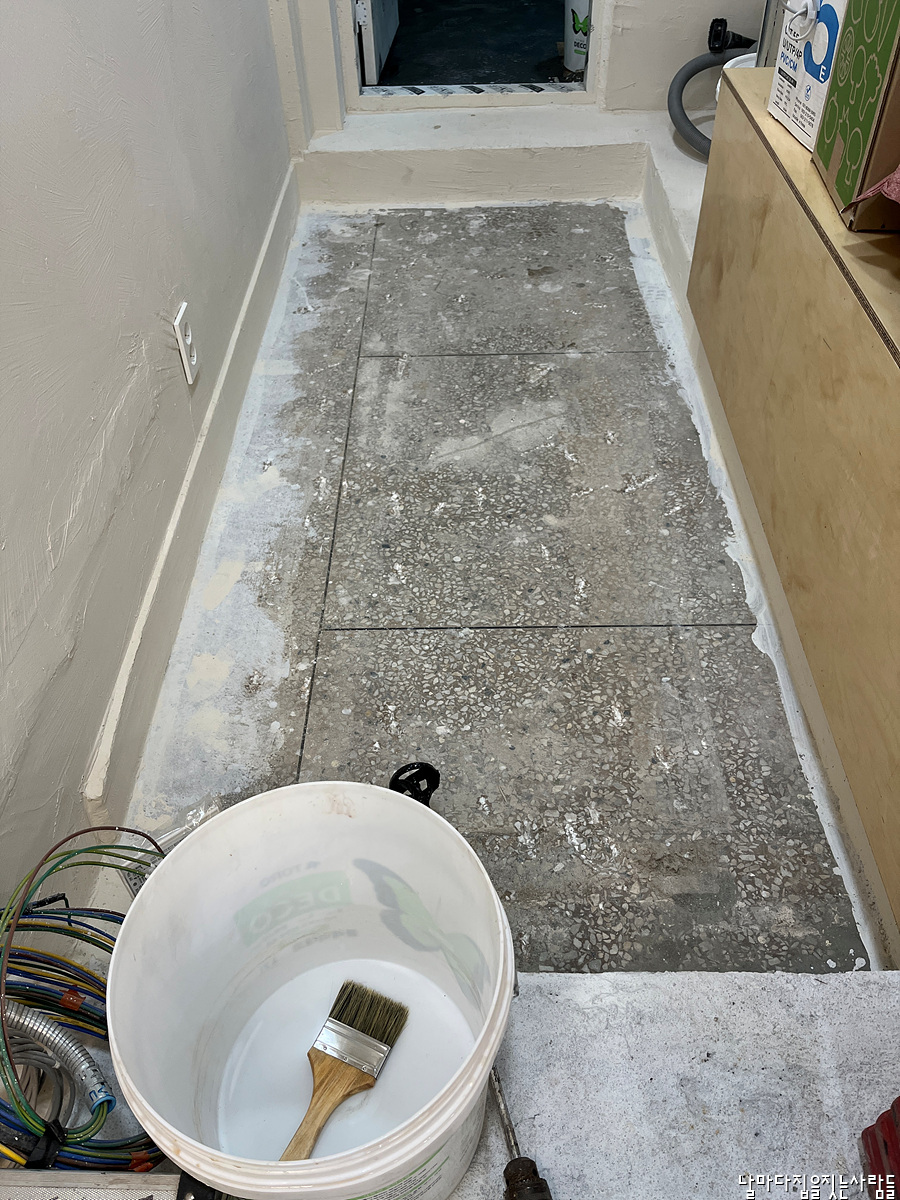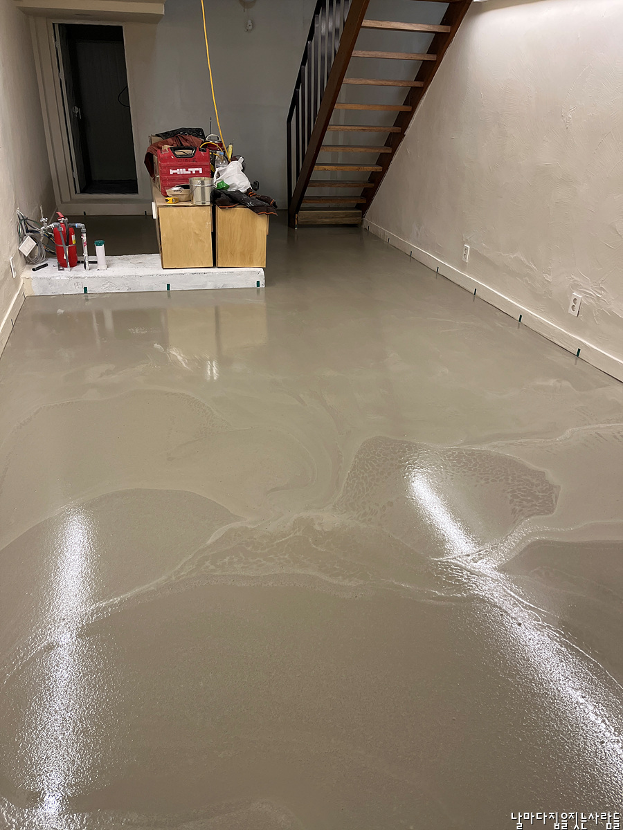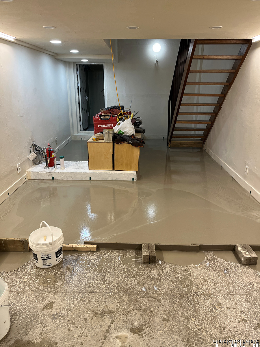 프라이머 바른 후 일정 시간 건조를 시킨 후 수평몰탈 작업을 진행합니다. 현장 환경에 따라 프라이머 건조시간은 차이가 날 수 있습니다. 참고로, 이번 현장의 경우 3시간 정도 건조 후 후속작업을 진행하였습니다.