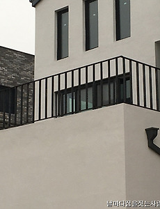 파주시 목동동 전원주택신축사례 : 큐블럭울타리,목재난간,회전계단,평철난간시공