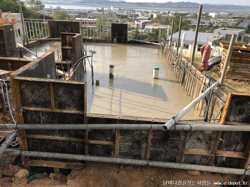 배관 연장작업이 끝나면 기초 테두리에 거푸집을 조립합니다.