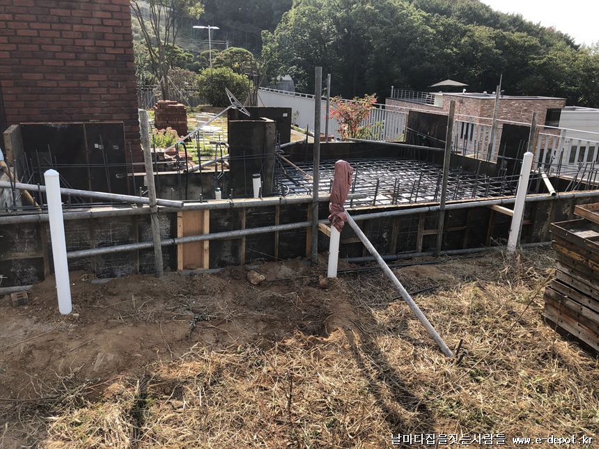부속건물의 시공 중 외부배관작업과 기초공사까지의 작업과정입니다.