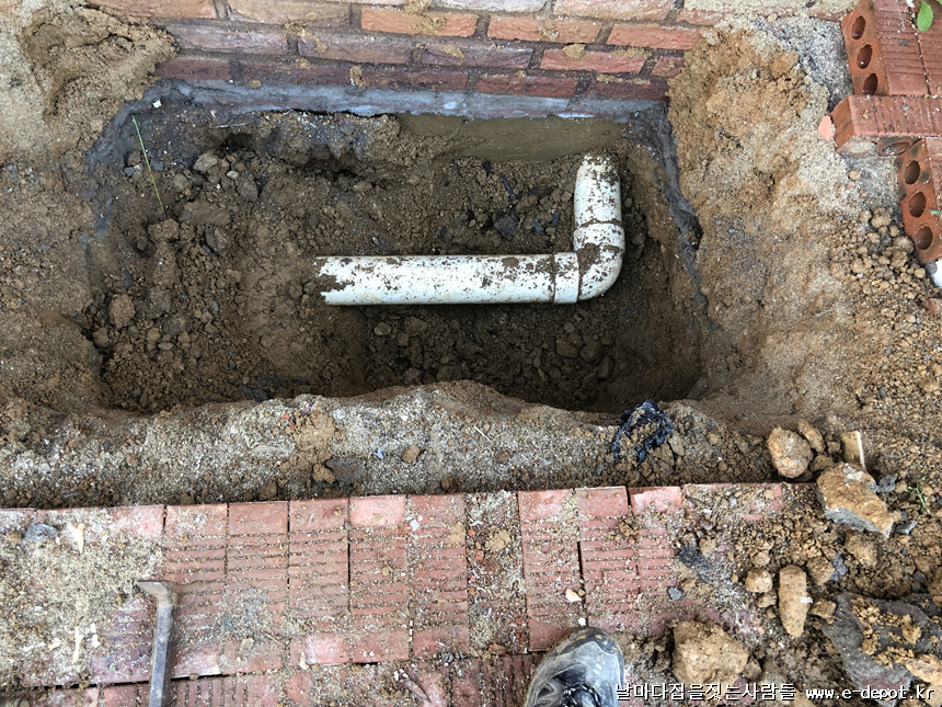 깊이 5~600mm 정도 파 들어가서 하수관을 찾았습니다..