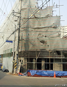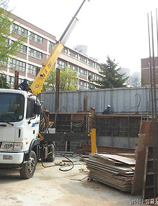 주택신축,전원주택,농가주택,상가주택 집짓기 : 주택신축 H빔해체 및 기둥,보,계단실거푸집조성 1층의 1차옹벽타설을 마친후 양생기간을 거쳐 흙막이 가시설구조물인 H빔 해체를 하였습니다. 크레인 무진동인발기를 이용하여 H빔을 가뿐히 제거하는데 소용되는 시간은 2시간 안팎.. 무진동으로 작업을 진행하여 주위에 소음피해는 없었지만 작업공간이 협소하여 작업자가 조금 애를 먹었슴다...ㅎ 며칠동안 토압을 지탱하고 있던 H빔을 제거한 모습.. H빔이 제거된 공간은 흙으로 깔끔히 되메우기를 해야 안전사고도 방지하고 건물에도 나쁜영향을 받지 않습니다. 건물 뒤쪽의 일부 되메우기 사진입니다. 건물 주변이 장소가 협소한 관계로 인력으로 되메우기를 하였습니다. 요즘은 장비가 몇사람의 몫을 하기는 하지만 여건이 허락치 않을때는..